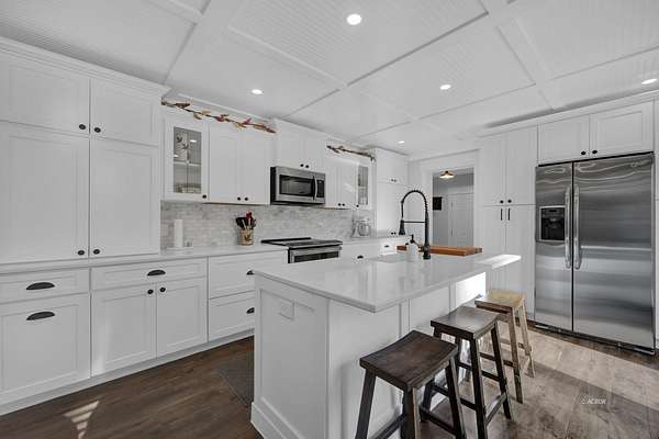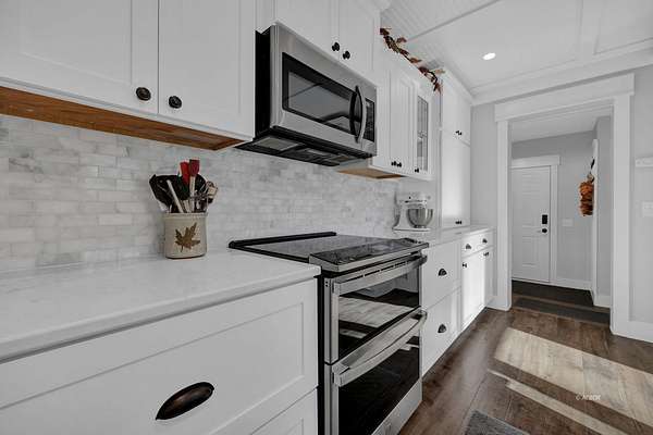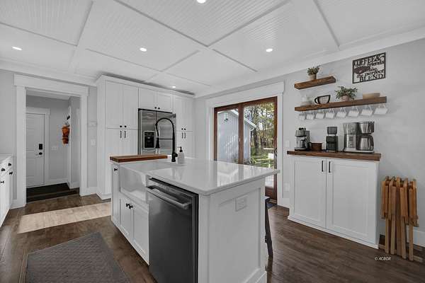 This stunning, spacious home has been completely transformed--so much so it's hard to know where to start. The kitchen was a total gut remodel, with a wall removed to add space from a little-used room. Layout, finishes, hardware, appliances, built-ins-everything-are designer quality and enduring design. The island and coffee bar make it so functional, while informal and formal dining lean into entertaining. Home-show addicts will want this home for the mudroom alone. It has everything your design heart (and organizing gene) desires, big enough for a cartwheel to celebrate. The home's mill work was upgraded, including the ingenious ceiling design in the kitchen, and there's new flooring almost everywhere. Design extends into the LR with added built-ins and fireplace. Even the half bath is a beauty. The owner suite bath, same story: gut remodel into the perfect space for the upgraded BR. The exterior also was completely transformed: farmhouse siding, brick porch details, metal roof and added pole bldg. Full home now has spray-in insulation. Whole-house H2O filtration, new door hardware, newer HVAC & water heater, staircase treads/risers, + more (see list). The view? Breathtaking!