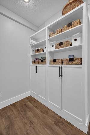- Carpet Flooring, Ceiling Fans, Decorative Fireplace, Laminate Flooring, Quartz Countertops, Solid Surface Countertops, Walk-In Closets, Window Coverings