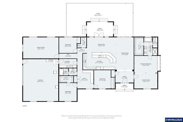 - Bathroom x 3, Bedroom x 3, Dining Room, Kitchen, Living Room, Master Bedroom, Office