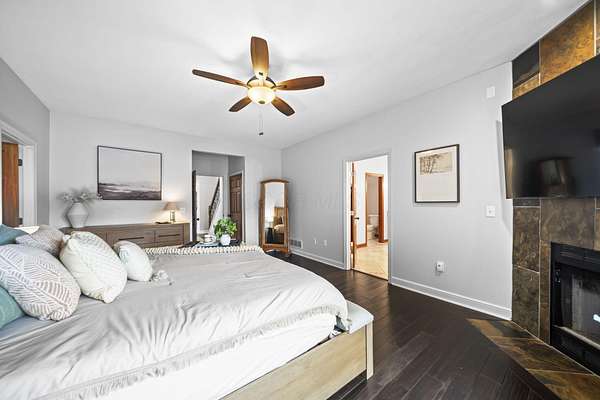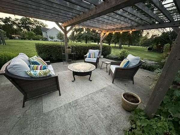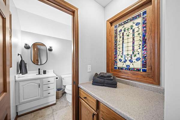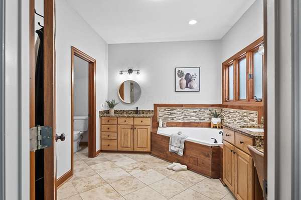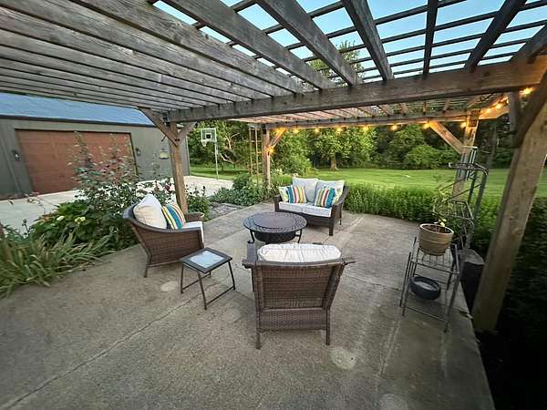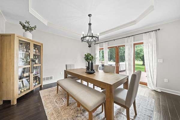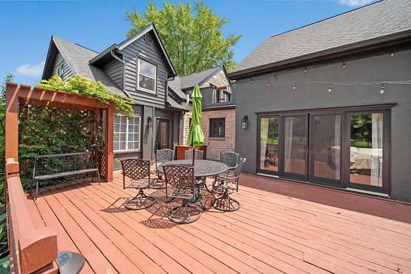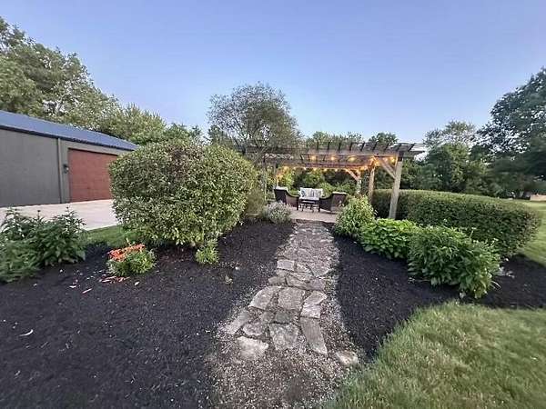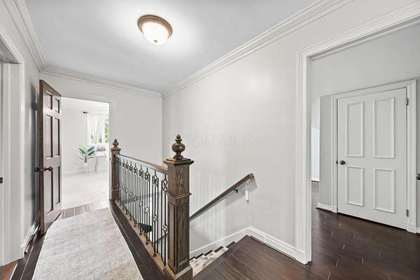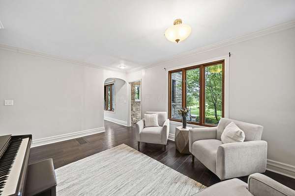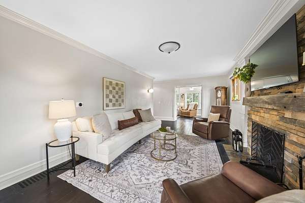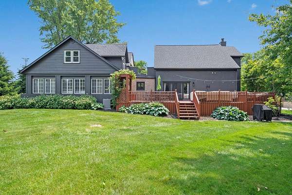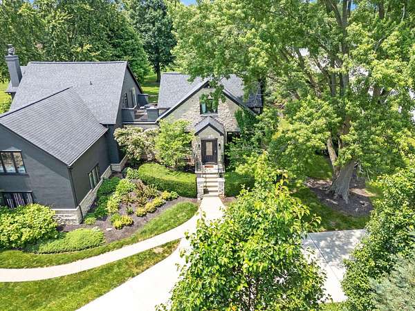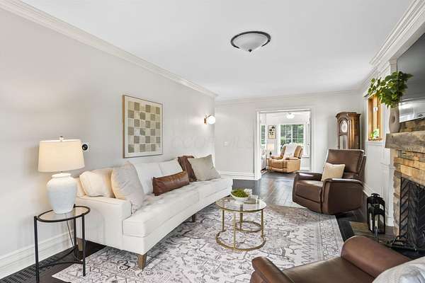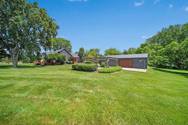 Lewis Center Luxe Retreat! Poised on 3 lush acres, this stone English Tudor-inspired residence greets you with an impressive, stone facade and a dramatic stone entryway, instantly signaling timeless craftsmanship and modern features. Inside, over 4,200 sq. ft. of refined living space, six bedrooms, and 3.5 baths merge historic character with polished sophistication for the most discerning buyer. A first-floor owner's suite anchors the home, highlighted by a fireside and a boutique-style walk-in closet. The just completed chef's kitchen dazzles with custom cabinetry, quartz counters, professional appliances, and a design that invites everything from casual breakfasts to champagne celebrations. Adjacent lies an updated laundry/mudroom. Espresso stained hardwood floors flow across freshly painted rooms, creating a crisp, move in ready ambiance. The upper-level addition showcases a second luxury suite with a private rooftop terrace, plus an airy loft and third living space, ideal for multigenerational living or extended guests. A secret room is concealed behind a custom shelf, perfect for a future tasting lounge, children's hideaway, or private safe room. Entertain on the expansive deck, sip evening wine beneath a pergola strung with cafe lights, or cultivate farm-to-table produce from your garden enriched with Ohio State University-sourced soil. Car aficionados and adventure seekers will revel in the 3,000 sq. ft., 10-plus car building paired with 11,000 sq. ft. of pristine concrete drive, providing unrivaled space for collectible cars, boats, RVs. Tucked away for serenity yet under a mile from Alum Creek beach, boat launch, and park and mere minutes from fine dining, designer shopping, and major commuter routes this residence delivers the coveted balance of seclusion and convenience. Whether your vision is a sophisticated multigenerational compound or a home-based business, this home is it!