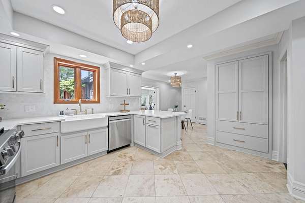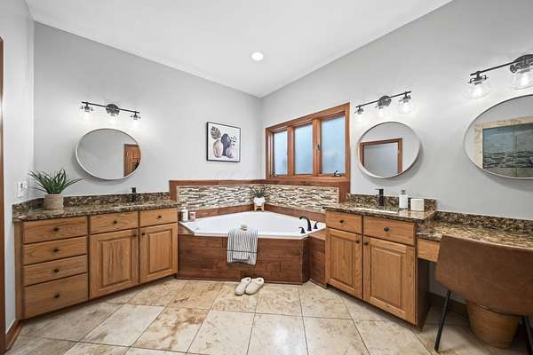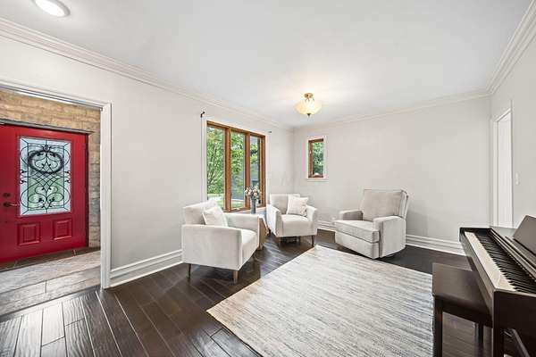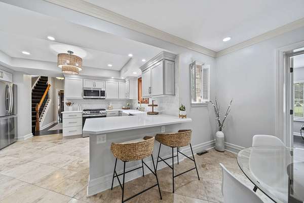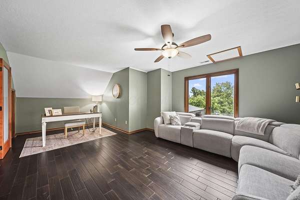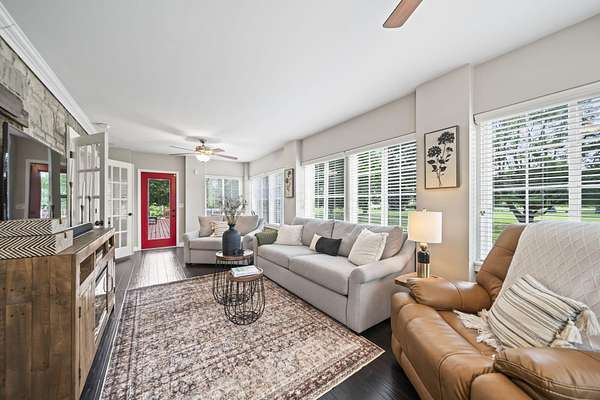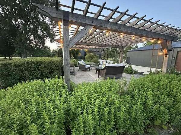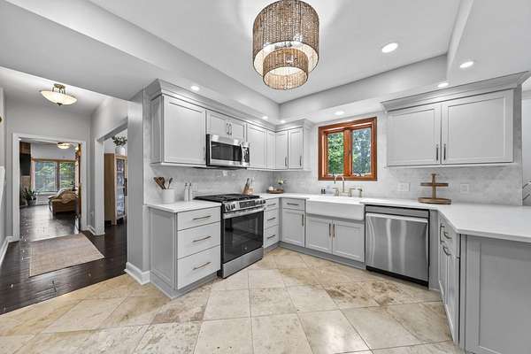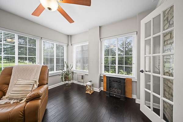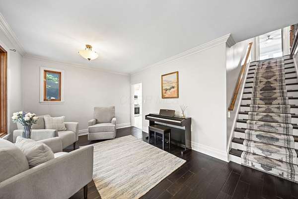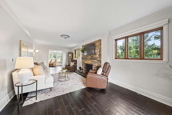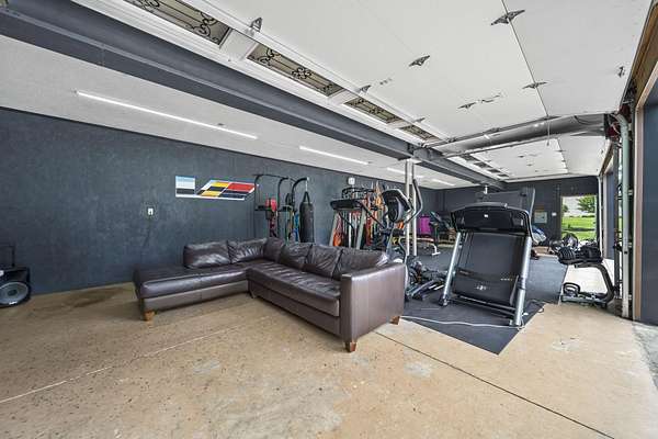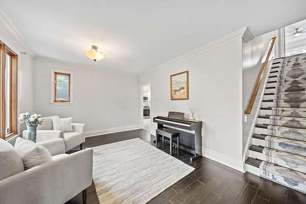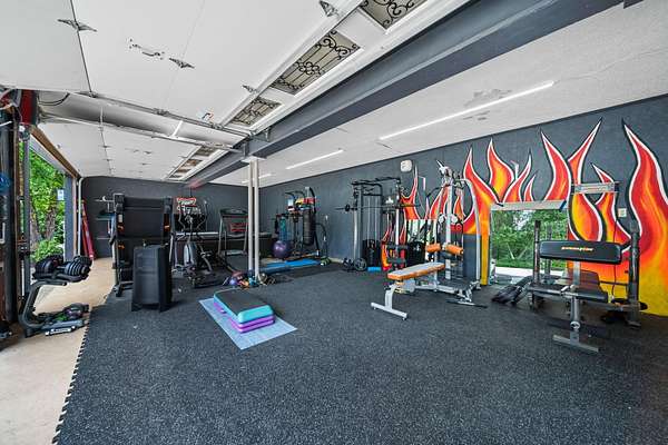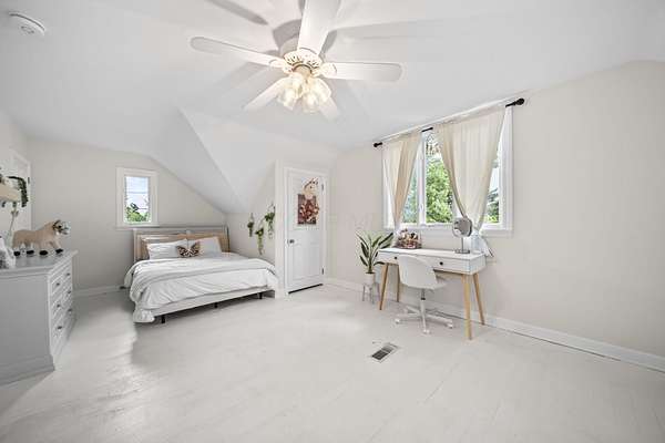 Lewis Center Luxe Retreat! Poised on 3 lush acres, this stone English Tudor-inspired residence greets you with an impressive, stone facade and a dramatic stone entryway, instantly signaling timeless craftsmanship and modern features. Inside, over 4,200 sq. ft. of refined living space, six bedrooms, and 3.5 baths merge historic character with polished sophistication for the most discerning buyer. A first-floor owner's suite anchors the home, highlighted by a fireside and a boutique-style walk-in closet. The just completed chef's kitchen dazzles with custom cabinetry, quartz counters, professional appliances, and a design that invites everything from casual breakfasts to champagne celebrations. Adjacent lies an updated laundry/mudroom. Espresso stained hardwood floors flow across freshly painted rooms, creating a crisp, move in ready ambiance. The upper-level addition showcases a second luxury suite with a private rooftop terrace, plus an airy loft and third living space, ideal for multigenerational living or extended guests. A secret room is concealed behind a custom shelf, perfect for a future tasting lounge, children's hideaway, or private safe room. Entertain on the expansive deck, sip evening wine beneath a pergola strung with cafe lights, or cultivate farm-to-table produce from your garden enriched with Ohio State University-sourced soil. Car aficionados and adventure seekers will revel in the 3,000 sq. ft., 10-plus car building paired with 11,000 sq. ft. of pristine concrete drive, providing unrivaled space for collectible cars, boats, RVs. Tucked away for serenity yet under a mile from Alum Creek beach, boat launch, and park and mere minutes from fine dining, designer shopping, and major commuter routes this residence delivers the coveted balance of seclusion and convenience. Whether your vision is a sophisticated multigenerational compound or a home-based business, this home is it!