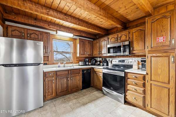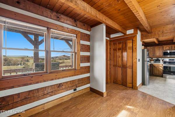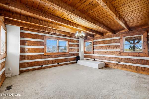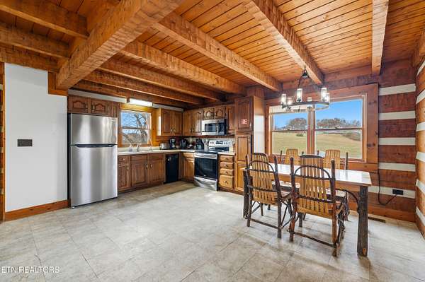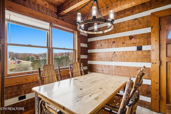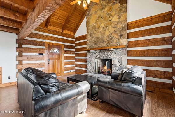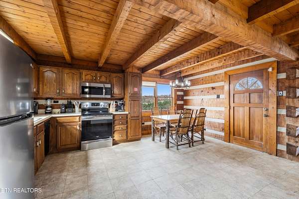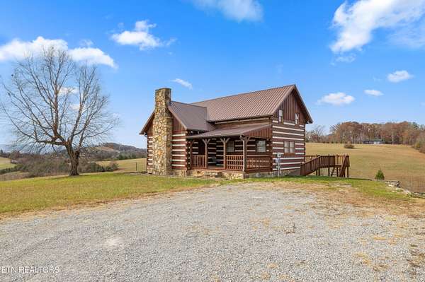 If you have dreamed of having a log cabin in the mountains of east Tennessee, then this cabin is meant for you. Nestled in the foothills of the Smoky Mountains, this authentic quality-built log home by Hearthstone, comes with mountain views and almost 4 acres of privacy. Plenty of room for the animals so bring the horses and chickens if you desire. This 3 BR, 2.5 bath home with finished basement features 2 covered porches, a covered outdoor balcony and a large deck area. Plenty of outdoor space for entertaining and for relaxing while soaking in the views of the mountains and the fabulous East Tennessee sunsets. The upper-level features 2BR/1BA and a large seating area overlooking the living area below. Just outside the seating area is a covered balcony for enjoying your morning coffee, the mountain views and quite outdoors. The lower level features the living area with a stone woodburning fireplace for those chilly nights. The master bedroom and kitchen/dining area. are also located on the lower level. A large deck is conveniently located just outside the kitchen area for your entertaining convenience and two covered porches just outside the living area for additional outdoor enjoyment. Includes a large, finished basement area suitable for a variety of uses. This home has been well maintained with recent updates including a new metal roof, resealing of the exterior, bathrooms and deck flooring have been updated. Would also be a great investment for short-term rental property or second home. Convenient to I-40 exit 407, Buc-ees, Bass Pro Shop, Douglas Lake and Great Smoky Mountain National Park. 30 minutes to Knoxville, 15 minutes to Dandridge, Sevierville/Pigeon Forge. The Great Smoky Mountain National Park is only about 30 minutes away. Convenient to shopping, dining, medical and all local attractions yet located in the peaceful and quite Kodak community. Come and take a look at this extraordinary log home and make it yours.