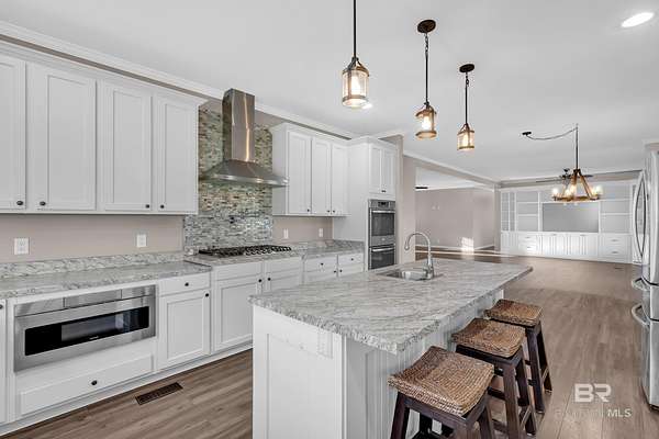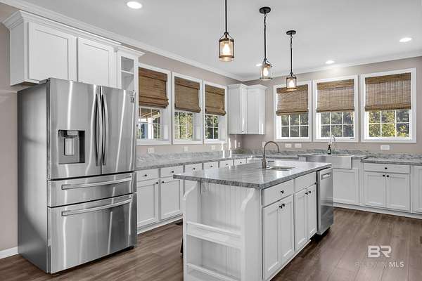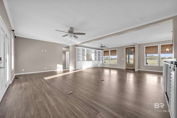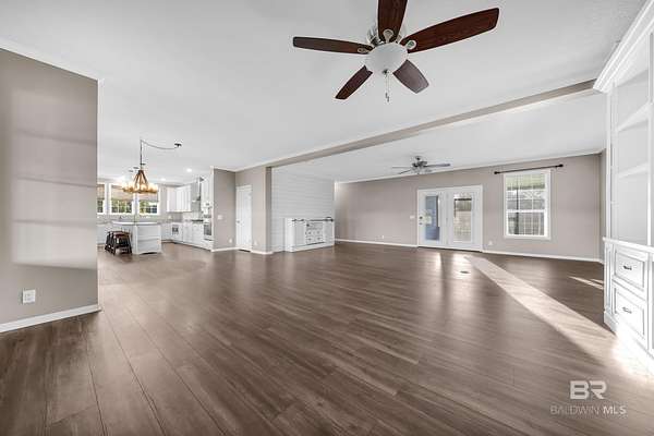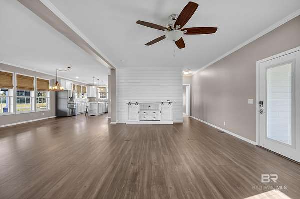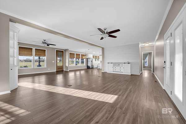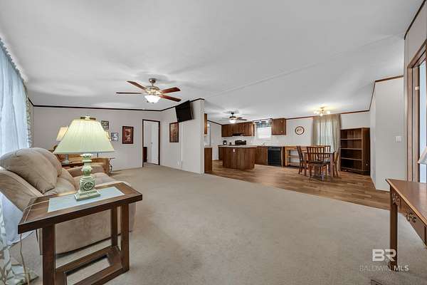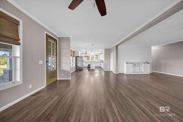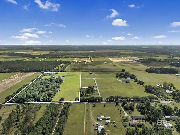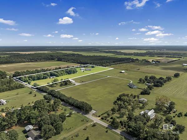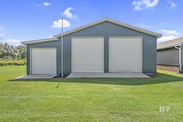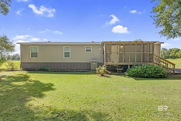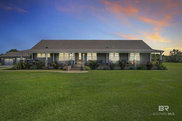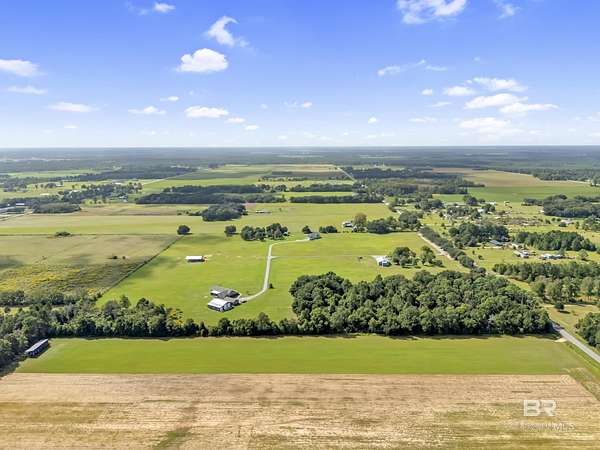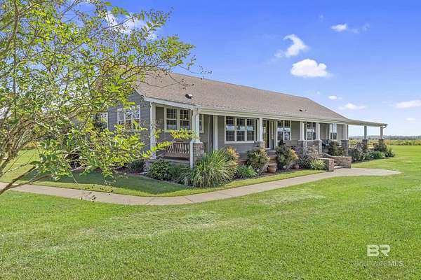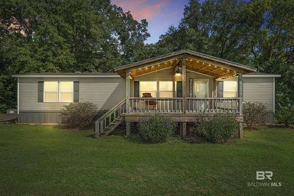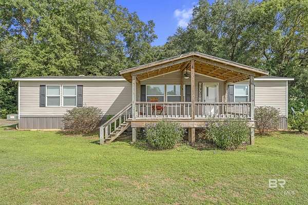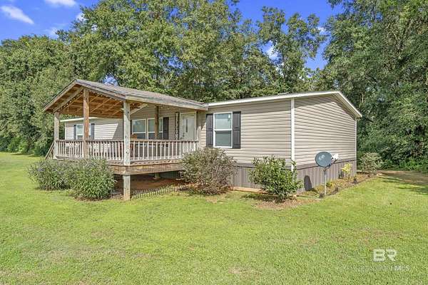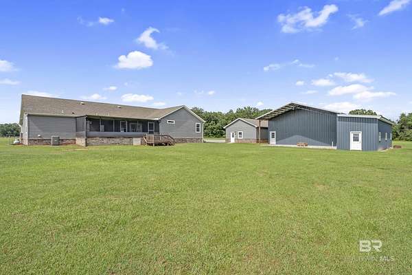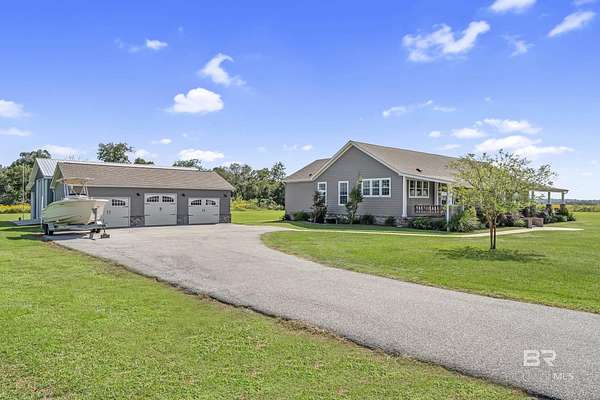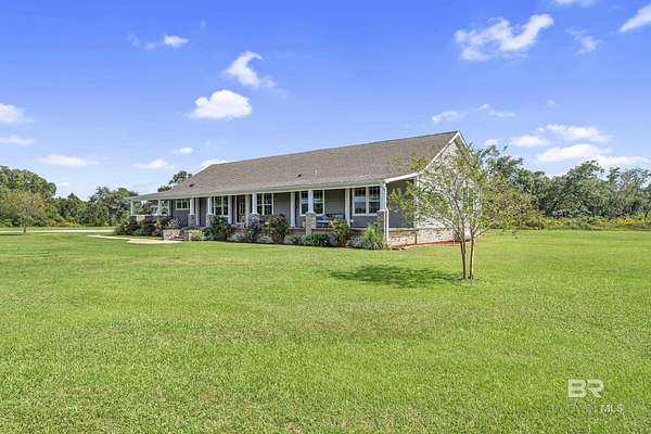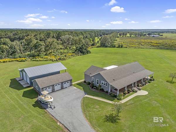 Discover 17 manicured acres in quaint Elberta, a farming community just minutes from the beaches of the Alabama Gulf Coast. Situated on the property are two dwellings. The first, a 2018 luxurious modular home with a detached custom 3 car garage and 50 x 48 metal building with power and plumbed for water, with height suitable for RV storage. The views from the grand front porch are inviting and unlike any other, with sunsets that are sure to make you slow down and soak in the beautiful surroundings. With 4 bedrooms, 2.5 baths and 2,900 sf, the modular home features a shiplap accent wall, new interior paint and boasts an open floor plan, along with an expansive screened in porch, perfectly suited for game days! Built in shelving, tile backsplash and bar top island complete the kitchen and living areas making them simply stunning. The primary suite is sure to impress with a plethora of closet space, separate tub and spacious shower. The metal building on concrete slab provides a way to capitalize storage needs with a multitude of build-out possibilities. The second dwelling is well maintained 2016 mobile home with 3 beds and 2 baths and 1,539 sf. Located within close proximity to schools, beaches, dining, entertainment and shopping, the location is ideal. Adjacent parcel with MLS #386594 also available for purchase separately. Buyer to verify all information during due diligence.