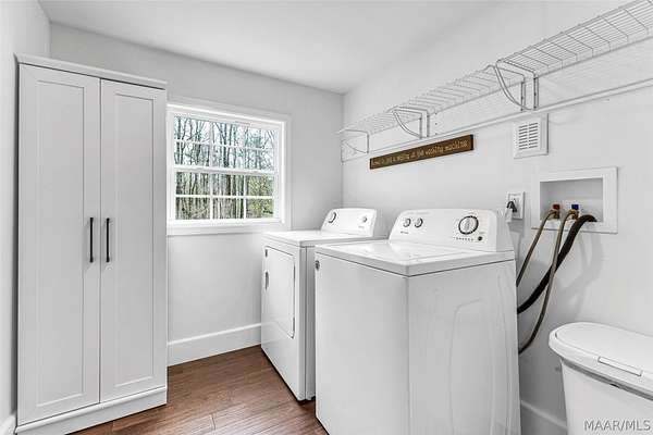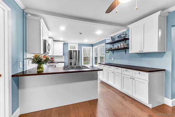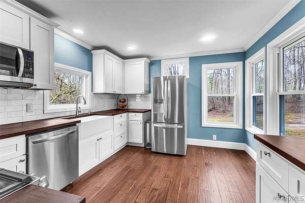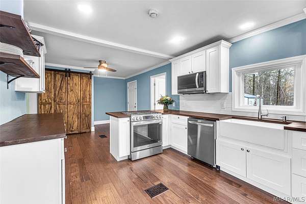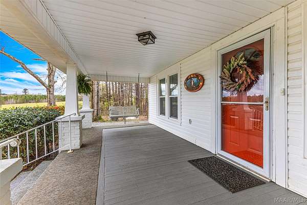 This charming country home offers a peaceful retreat on 4 acres, with 3 acres fully fenced, making it the perfect homestead for horses, cows, and more. Enjoy the best of both worlds with quiet country living just 10 minutes from Lake Martin. As you enter, you're welcomed into a cozy living room featuring a fireplace. Just off to the left is a flexible space that can serve as a bedroom or office, complete with its own private half bathroom. The home features an open-concept layout, with the living room flowing seamlessly into a dedicated dining area or extended living space. This area connects directly to a newly renovated kitchen, showcasing butcher block countertops, LVP flooring, fresh paint, and all-new appliances. The kitchen also includes a spacious pantry with stylish rolling barn doors and an attached laundry room for added convenience. A back door leads to a brand-new enclosed patio, perfect for relaxing or entertaining. Just off the dining area, the main bedroom offers a spacious retreat with a newly renovated primary bathroom. Large windows overlook the fenced acreage, giving you a perfect view of your animals and land. Upstairs, you'll find a second level featuring a loft space, a third bedroom, and an additional full bathroom, ideal for guests or a private suite. Step outside to enjoy even more: a brand-new above-ground heated saltwater pool, perfect for year-round enjoyment. The property also includes a newly added pole barn with a roll-up door, a bunny hutch, and an additional storage shed. Mature fruit trees are scattered throughout the property, producing peaches, figs, muscadines, blueberries, plums, and apples. In addition to its charm, this home has been thoughtfully updated with major improvements, including new windows, a tankless water heater, two new mini-split systems, updated plumbing, and much more.