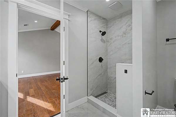 New construction. Single family ranch on approx 2 acres. 1856 sq ft of living space, featuring 3 bedrooms and 2.5 baths, and also a 768 sq ft attached heated garage. Outside features vinyl siding, timber framed wrap around patio with stamped concrete, stone veneer and a private lot. Inside has an open floor plan, vaulted ceilings in great room and primary suite, hardwood flooring throughout, tiled bathrooms and tub surrounds. The primary bath has a walk in shower with bench seat. Quartz countertops and all new appliances. Forced air furnace and central air conditioning. Spacious bedrooms. Bemus school district, country yet a minute drive to town. Assessment on listing reflects land. New build will be reassessed. Tax information based off land value. Land is being divided to be determined by new survey approx 2 acres. Additional 1.8 acres also available. Listing agent has ownership interest in property.