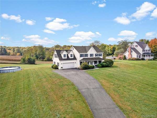 Nestled amongst picturesque cornfields, this beautiful 4 bedroom, 2.5 bathroom colonial offers over 2300 square feet of comfortable loving space. Located in the WALLKILL school district, this home perfectly blends peaceful country living with convenient access to both the Hamlet of Wallkill and the nearby Village of Walden. This home features beautiful hardwood floors, central air, and a freshly painted interior. On the main floor, you will love the amount of natural light that floods the living room, formal dining room, and the spacious kitchen. A half bathroom and sitting room complete the lower level. Upstairs, you will LOVE not carrying laundry up and down the stairs, as the laundry room is located on the same floor as all 4 bedrooms. Including the primary suite, complete with oversized bathtub AND a shower! Full unfinished basement and attic provided plenty of storage space. Paved driveway leads right into your attached 2-car garage. Enjoy outdoor living at its finest with large back deck, swimming pool, and over 2 acres of space to unwind and relax. Call today for your showing!
