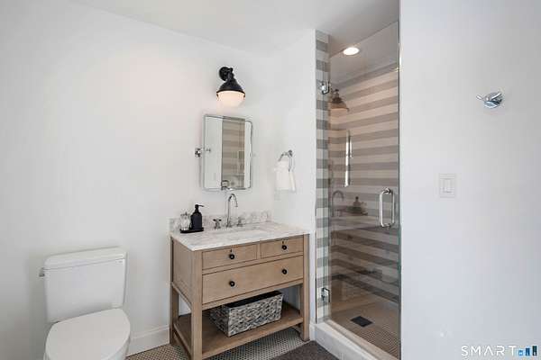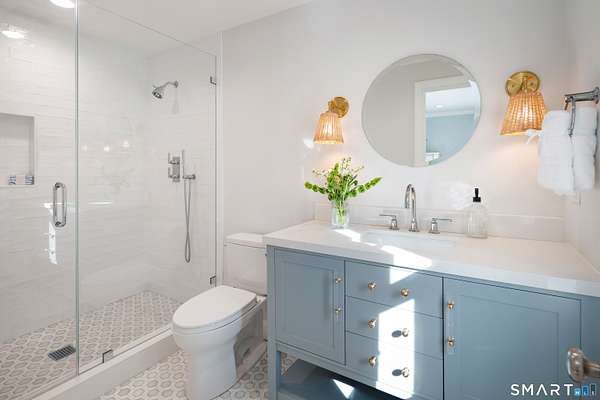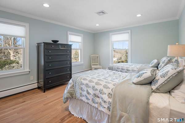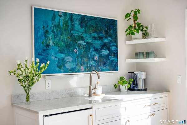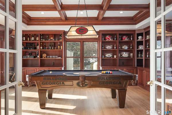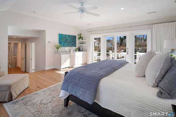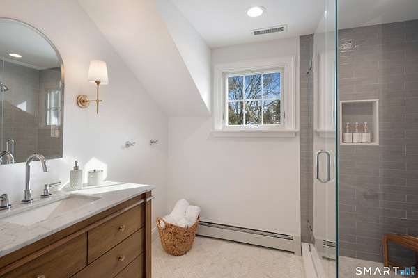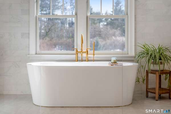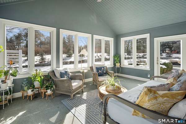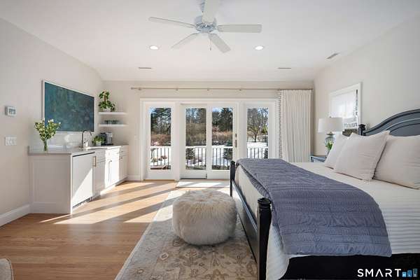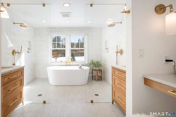 Experience the perfect synergy of classic New England charm and forward-thinking design in this stunning 2024 renovated and expanded Colonial. At the heart of the home, a sun-drenched chef's kitchen with a cozy stone fireplace flows seamlessly into living spaces anchored by dual staircases and a family room featuring bespoke built-ins with window seats, a wet bar, and French doors leading to a vaulted sunroom. Retreat to a primary suite that rivals the finest boutique hotels, boasting a vaulted ceiling, private balcony, coffee station, and a spa-inspired wet room with a double shower. All bedrooms are en-suite with designer bathrooms and the flexible space of the billiards room or library offers space to suit any lifestyle. The finished lower level includes a bonus room and gym. Outside, your private oasis awaits with a brand-new 20x40 heated pool, stone terraces, and a premium grilling station nestled among lush, low-maintenance landscaping for total seclusion. Best of all, this home is powered for the future with solar panels providing energy independence and significant savings. Located just one mile from town and the train, this turn-key sanctuary offers a rare, eco-conscious lifestyle where casual entertaining meets high-end formal elegance.