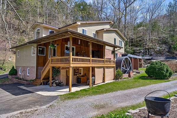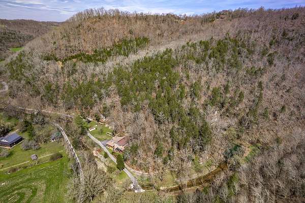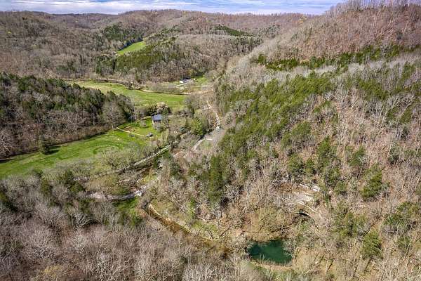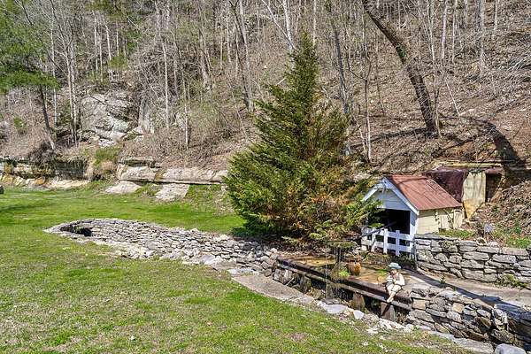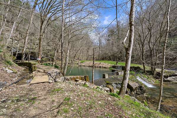 This is a unique property, for so many reasons .It has an extraordinary home that has a view from every side ,a creek ,hills ,spring ,woods and lots of wild life .Home has three Mill wheel gears inside & Wheel to the old Mill on out side .It has a large cave that houses protected bats and a nice cave to explore .Cripps Mill Cave is more than 1.8 Kil This cave provided water in order to turn the Wheel to grind the corn .There is a road just beyond the cave that was use to get the horses and buggies back an forth from the mill to Smithville and surrounding areas .This cave and large ponds at one time was home to a Trout Farm ,people from the area could catch large trout .Visit links and Documents for so much more information. All information Must be verified through Buyer and Buyer agent.
