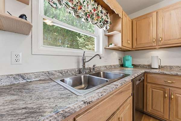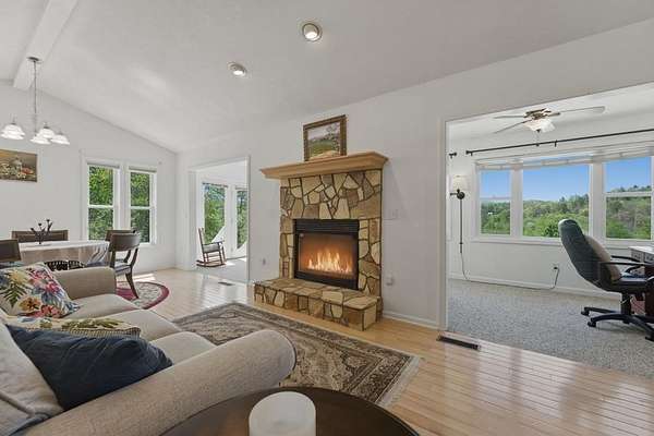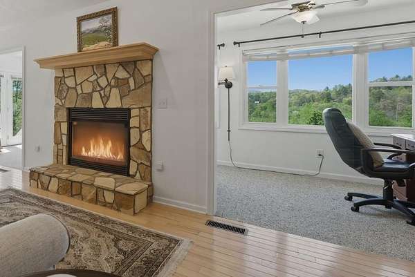 Spacious 3 BR, 3 bath home with beautiful long-range views overlooking a peaceful pond & mountains beyond. Sitting on 2 lots, totaling 2 acres, so it offers privacy while being just minutes to town & shopping. The main level features an open floor plan with easy access to the primary suite for comfortable one-level living, plus a large sunroom to enjoy the views year-round. The kitchen has been updated with newer countertops, stove & dishwasher, & overlooks the spacious living room that has a cozy Fireplace. 2 more BR's, a bath & laundry round out the main floor. The lower level is finished with a complete in-law suite, including a second kitchen, bonus room/office, full bath, family room that is big enough to be a game room too + there is a theater room. Enjoy outdoor living with a large covered porch on the lower level, perfect for entertaining, with family or friends while enjoying the mountain views. There is an attached 2 car garage too. All this in a sought after established neighborhood, with paved roads. Also has a paved driveway for easy access, & mature landscaping. This peaceful mountain setting, makes this a great option for full-time living or a spacious 2nd home.