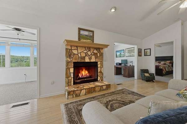 - Bonus Room, Breakfast Bar, Cathedral/Vaulted Ceiling, Ceiling Fan(s), In-Law Floorplan, In-Law Quarters, Large Master Bedroom, Living/Dining Room, Main Level Living, Open Floorplan, Pantry, Primary On Main Level, Primary w/ Ensuite, Sunroom