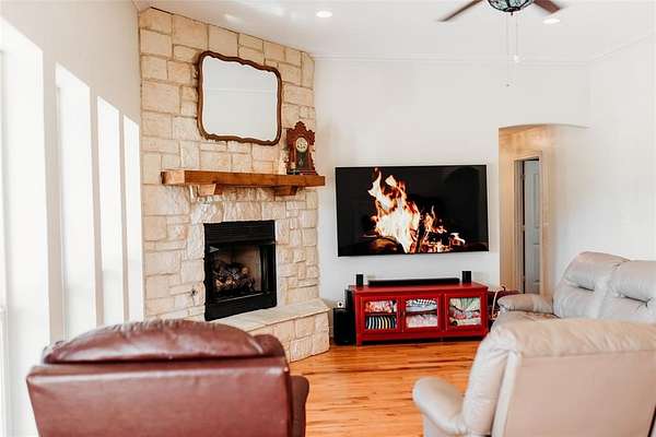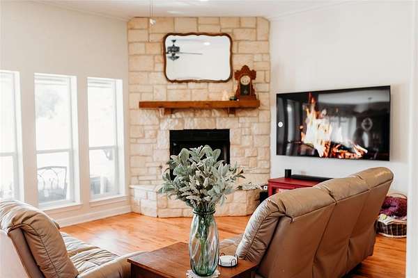 Beautiful home in Sand Creek offering peaceful country living yet minutes away from Bonham's amenities. Centrally located Mckinney, Sherman, Paris, Commerce and Durant are all less than an hour drive. If you are looking for recreation, several lakes are nearby including Bonham Lake, Bois D' Arc Lake and Bonham State Park. This home features a beautifully landscaped yard with raised garden beds and trellis, fenced backyard, covered pergola to enjoy coffee in the mornings or evening cookouts. Inside you will find a gorgeous stone fireplace with gas logs, a well-equipped kitchen with granite counter tops, brick backsplash, gas cooktop, pantry and reverse osmosis under sink system. Living room has 11 ft. ceilings with 9 ft. ceilings throughout. Primary bedroom has an ensuite with a garden tub and separate shower, double vanity and walk-in closet. A spacious office space could also serve as a 4th bedroom. New roof, new tankless water heater and all windows sealed in 2024. New carpet in 2025, new interior paint, new lighting and ceiling fans. All information is deemed reliable but not guaranteed. Buyer and Buyer's agent verify all details.
