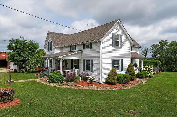 Discover a rare opportunity to own a piece of Kentucky history. This charming farmhouse sits on 41.28 acres of rolling bluegrass in Grant County. Public water lines, a private well, and cistern are in place, providing flexible infrastructure. Perfect for horse lovers, hunters, developers, or those seeking a retreat, the property offers versatility and convenience. Opportunities abound for equestrian, outdoor sports, or future development-all in a picturesque setting. The farmhouse features 4 bedrooms, 1 bathroom, and historic charm. Property includes 2 equipment barns, a 4-car detached garage, a horse barn with 7 stalls, a shed, a tack room, and a hunting cottage with electric and exterior water supply. Development Opportunity: This property includes 56 platted lots within the established Swanee Shores Subdivision, offering clear potential for development. The lots are ready for various projects and benefit from the property's proximity to amenities: Only 11 minutes to the Ark Encounter, 9 minutes to I-75, 35 minutes to CVG, and 4 minutes to Williamstown Lake.