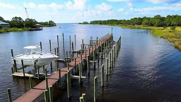 Build your home or bring your RV to Sunset Isle in Carrabelle, Florida. The property features an expansive 18x50 outside boat slip along the Carrabelle River. This slip accommodates larger boats and sailboats due to its deep water and extra width. Its location is superb, with only minutes to the Intercostal Water Way and the Gulf of Mexico. Gated Community: Sunset Isle is a secured community known for its meticulous maintenance, which contributes to security and property well-being. The region emanates an Old Florida ambiance and provides convenient access to various amenities, including beaches, shops, restaurants, and more. St. George Island, Eastpoint, and Apalachicola are conveniently accessible within a 20-30 minute drive. Homeowners' Association (HOA) fees cover various aspects such as lawn maintenance, exterior lighting, insurance, and management. These features make the property appealing to individuals seeking waterfront living, outdoor activities, and a safe, closely-knit community environment.