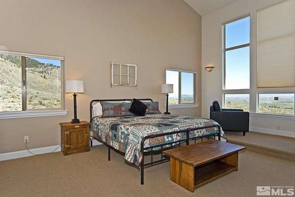 This is a beautiful custom home w/incredible views in all directions and it has been meticulously maintained. The main level offers a spacious kitchen w/custom cabinetry & granite, prep sink, pantry & breakfast bar. It opens to a large dining area & family room w/hardwood floors & slider to a private deck, as well as a 1/2 bathroom. The living room has a high vaulted ceiling, a cozy gas freestanding fireplace & many windows with expansive views. There are three bedrooms on the main floor, one with its own bathroom and deck, & another full bathroom. Upstairs is a generous master suite with sitting area, as well as a large loft/game room and office area. Other special features of this home include Dual heat & A/C, 2500-gallon water storage tank for fire suppression, tons of storage throughout, spacious garage and a graveled driveway with a lot of parking. This house has been a popular Airbnb in the past. It has a unique design with a ton of character and natural light, and it was designed with views in mind. It shows beautifully. Located within close proximity to numerous golf courses and world class ski resorts, Lake Tahoe, Kirkwood, Markleeville and the Carson Valley, NV. Central to numerous mountain lakes, rivers & hiking trails and located in an area of very nice homes.