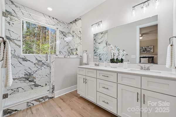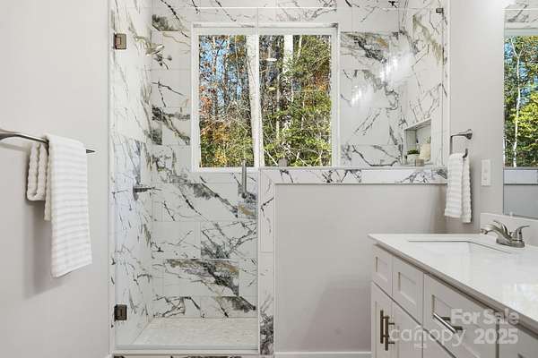 Welcome to your Brand New, Ranch Home on a large 2+ acre, private lot and right across the street from High Rock Lake!! Enjoy the expansive covered front porch that is perfect for a couple rocking chairs or swing. Walk inside the double front doors to tall ceilings & LVP flooring throughout the Home! Office/Study located off of the foyer with French doors. Open floor plan of the Family Room & Kitchen which is perfect for family gatherings or entertaining company. Luxury quartz countertops in the Kitchen with an oversized island, walk-in pantry, & a plethora of soft-close cabinets and drawers perfect. Formal Dining Room is right off of the Kitchen. A spacious Primary Bedroom features a spa-like Primary Bathroom with frameless tiled walk-in shower, double vanity with cultured marble countertops, and a vast walk-in closet. Home also provides two nicely sized Guest Bedrooms and additional Full Bathroom as well as Powder Room. The back patio allows you to take in the privacy of the mostly wooded back yard and all of your acreage! Boat slips, beaches and other access located a few minutes away allowing access onto High Rock Lake!