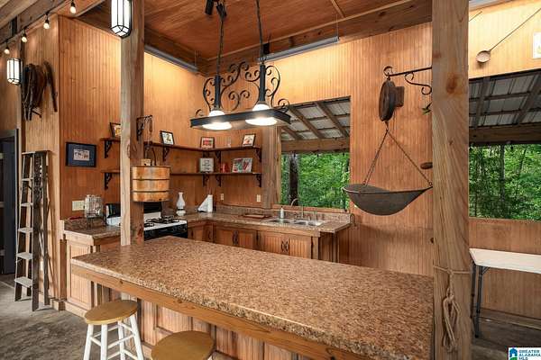 Escape to this stunning 13-acre estate in Springville's Mountain View Estates! This custom 4BR/3.5BA home offers over 3,100 sqft of space with soaring ceilings, hardwood floors, split-bedroom layout, and a luxurious master suite. The spacious kitchen features solid surface counters, stainless appliances, and double ovens. Enjoy a screened-in deck, outdoor fireplace, and incredible mountain views. The highlight is a 2-level entertainment barn with mini kitchen, full bath, stage, games, and storage--everything inside stays! Main-level and basement garages plus tons of storage. Private, peaceful, and perfect for entertaining. Convenient to I-59. A must-see!