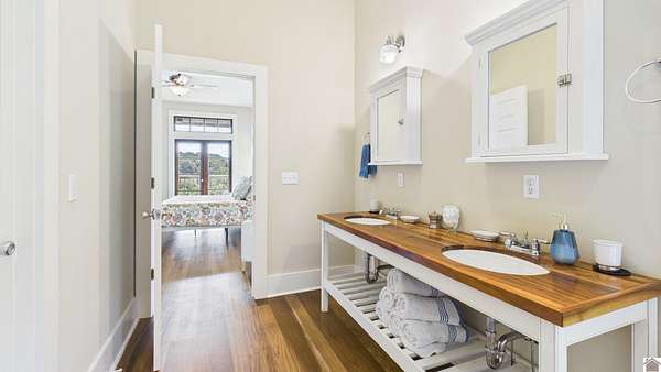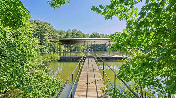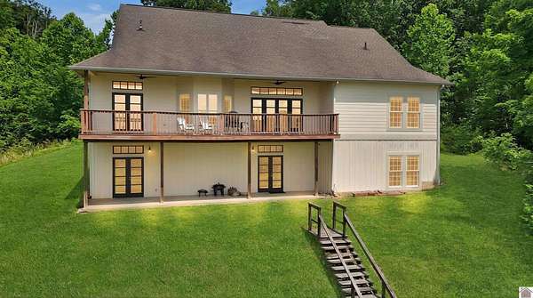 Experience lake living on Lake Barkley in the highly sought-after Eddy Creek area, just minutes from Eddy Creek Marina. This waterfront property sits on approximately 2.18 acres and features a 5-bedroom, 4-bath home with a spacious floor plan, ideal for full-time living, a second home, or an investment opportunity. The property includes access to a private community dock with two covered slips, providing convenient, immediate access to the lake. The home features poplar wood flooring, custom black walnut doors, and a stone and Hardie board exterior with board-and-batten accents, offering a strong foundation and timeless appeal. Lots L5 and L6 Are DOCKABLE AND CAN BE PURCHASED OUTSIDE OF LISTING CONTRACT. THEY ARE NOT A PART OF PURCHASE PRICE OF $695,000. This property offers a great opportunity for a buyer to personalize and make it their own, while enjoying a prime Lake Barkley location with close proximity to amenities, marina access, and easy water access.