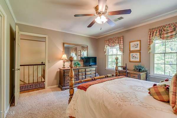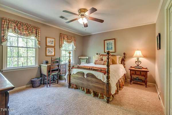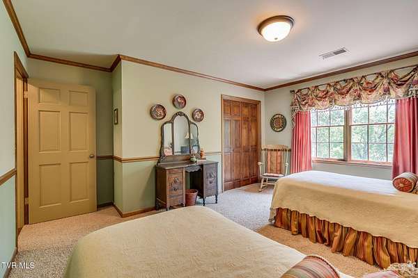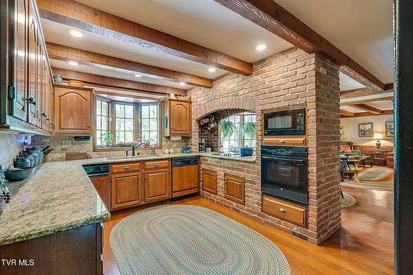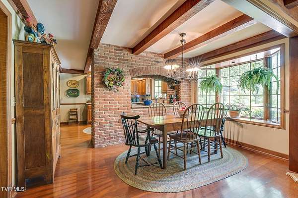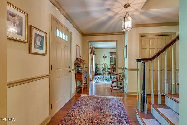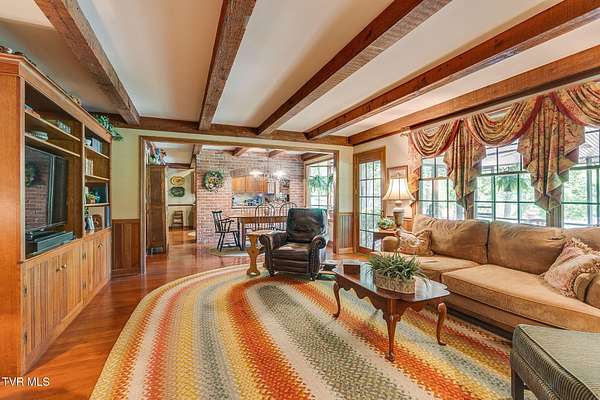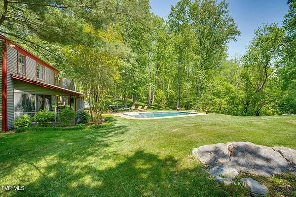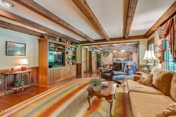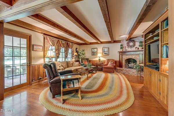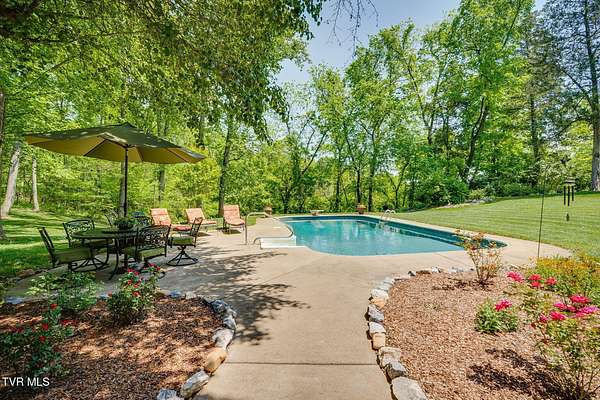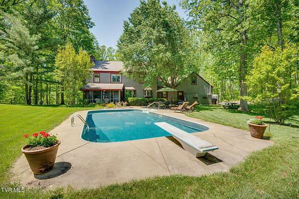 Welcome to this beautifully maintained 4,000+ sq ft custom-built New England Colonial, perfectly nestled on 6.55 secluded, wooded acres - offering peaceful privacy while remaining just minutes from shopping, the interstate, and the airport. This 5-bedroom, 3.5 bath home boasts architectural charm. Step inside to find solid sand-and-finish cherry hardwood floors, elegant wainscoting, crown molding throughout, and solid wood paneled doors. The craftsmanship shines in every detail, from the 8'' cedar ceiling beams in the family room, dinette, and kitchen to the custom mantels - walnut in the family room and full wood panel in the formal living room. The kitchen is a dream with granite countertops, cherry cabinetry, a vintage brick arch, triple sink under a bay window, garbage disposal, compactor, and ample storage. The adjoining dinette also boasts a large bay window with stunning views of the in-ground 17x35 ft pool and serene backyard. Enjoy cozy evenings by one of three working vintage brick fireplaces (two with gas logs). Upstairs, you'll find the spacious primary suite and three additional well-sized bedrooms. The finished basement offers a 5th bedroom with walk-in closet and full bath, a large rec room, and plenty of unfinished storage. This home is packed with smart and convenient features: -A dedicated mudroom with coat closet -Laundry room with folding counter, built-in ironing board, and upstairs laundry chute -Nutone central vacuum system -Whole-house water filtration -Pool bath and screened back porch for effortless entertaining Storage is unmatched with a truss-supported walk-in attic over the garage, two large walk-in closets (one cedar-lined), and a large fully floored 4th-floor attic - all built to handle heavy storage. If you're looking for timeless elegance, privacy, and functionality in a one-of-a-kind home, this stunning Colonial is a must-see. Schedule your private showing today!