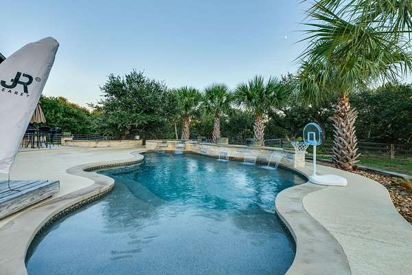 $25K buyer incentive being offered Welcome to your private Hill Country escape! Nestled on 5 beautiful acres, this property blends modern comfort with endless outdoor enjoyment. The main home offers 4 spacious bedrooms and 4 bathrooms across 3,085 sq. ft., designed with open living spaces and plenty of natural light. Step outside and you'll find your very own backyard oasis-complete with a sparkling pool, inviting fire pit area, and wide-open skies perfect for entertaining or relaxing evenings. Car enthusiasts, hobbyists, and adventure seekers will love the dedicated RV storage and the ultimate man cave, offering room for all your toys, projects, and gatherings. Whether you're hosting friends, enjoying quiet mornings on your acreage, or cooling off in the pool after a long day, this property delivers a lifestyle of comfort, convenience, and fun. Don't miss your chance to own this rare Hill Country gem where every detail is designed for both relaxation and adventure.