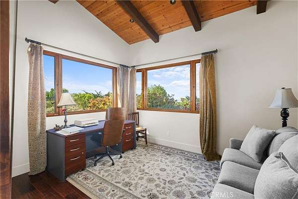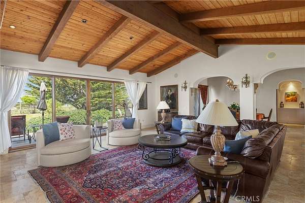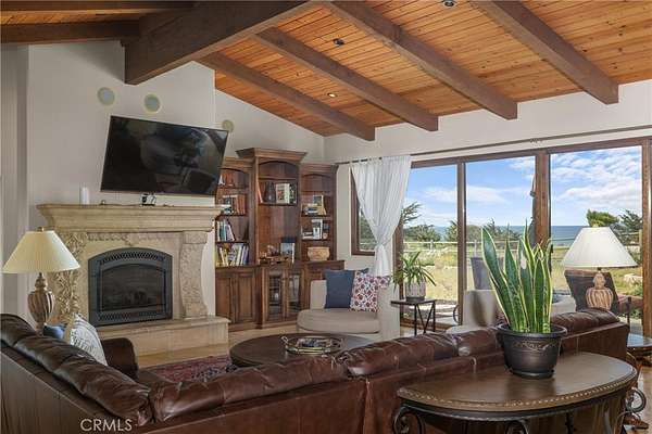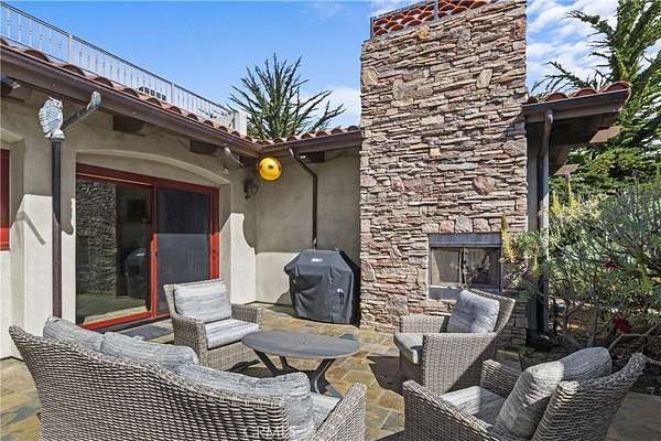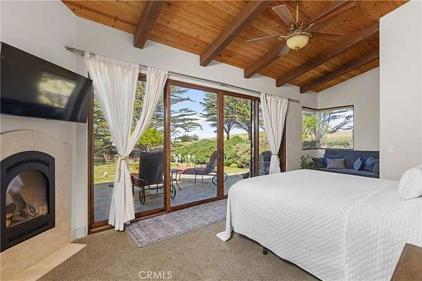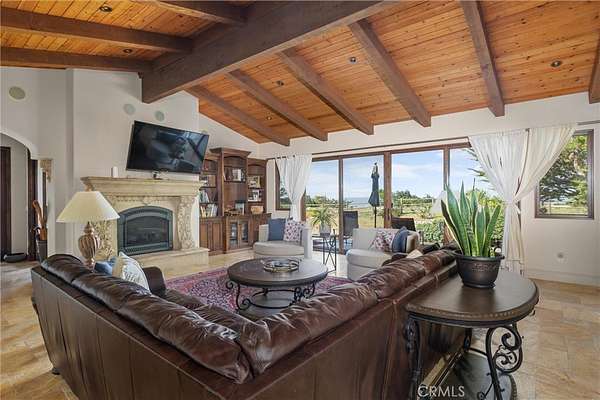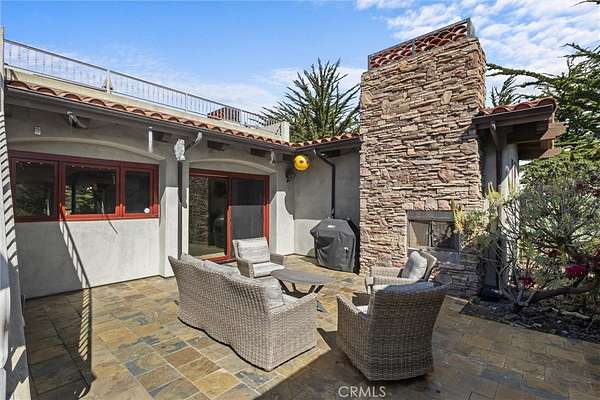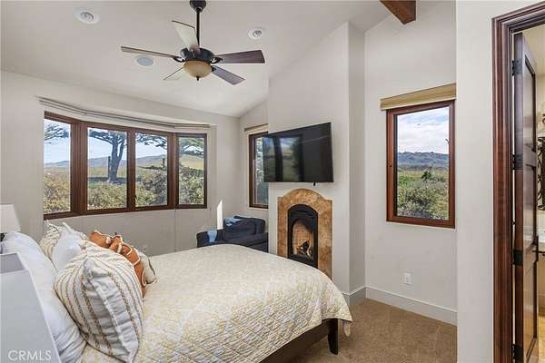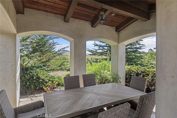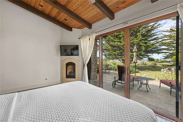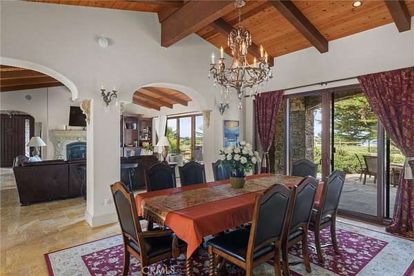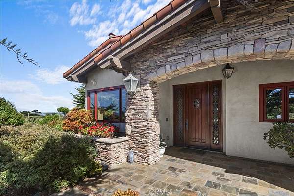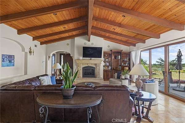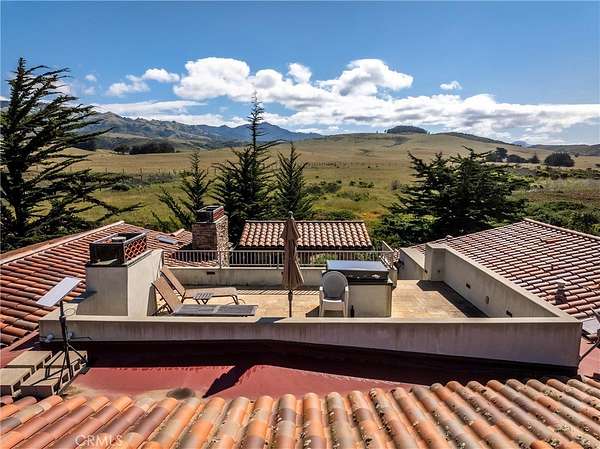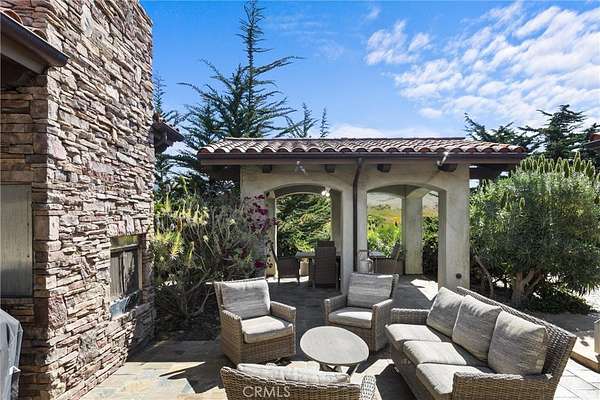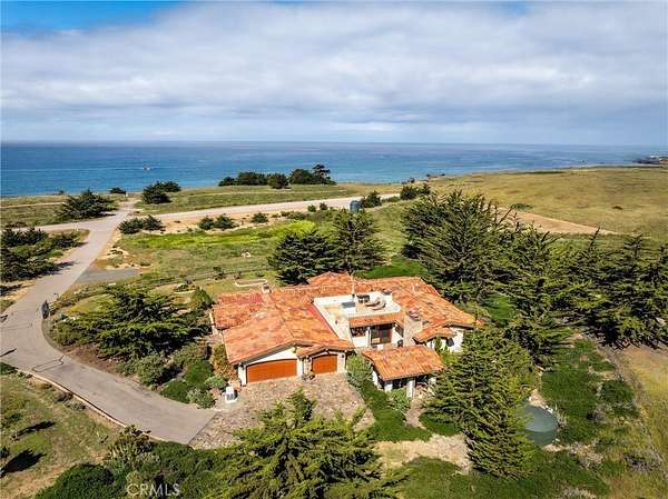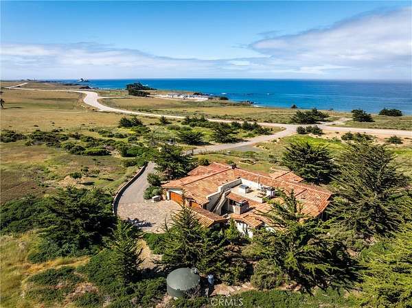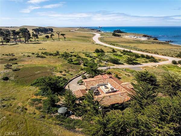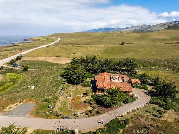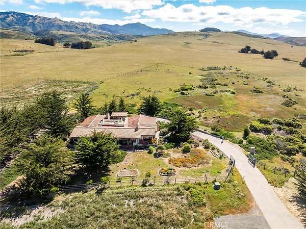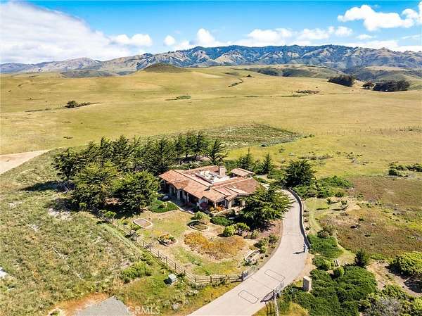 Truly a one-of-a-kind property, this Tuscan-inspired Villa is situated on 6.5 acres surrounded by the Hearst Ranch. It is located along the beautiful coastline 15 miles from Cambria. Your neighbors are the Piedras Blancas lighthouse and the elephant seal rookery. Single level home with unobstructed ocean and coastal landscape views from inside and out. Enter through the gate into a parklike setting complete with a rooftop deck, verandas, patios, and dining areas perfect for entertaining or just relaxing in the sun. As you walk through the front door you enter the great room with floor to ceiling windows which open out onto a patio. You will note the stone floors, custom chandeliers, lighting, and many fireplaces throughout the entire house. The kitchen has been designed for gourmet cooks or just family fun. You will find double ovens, a prep island, and a large complete butler's pantry. The impressive primary suite is a very private retreat with a fireplace and ocean views. There is a dressing area and a large walk-in closet. The bath features a jetted tub and walk-in shower, all with custom stonework. Three-car garage with EV charger. Licensed Vacation Rental with a good rental history. The property is fenced and has many options for the outdoor enthusiast.