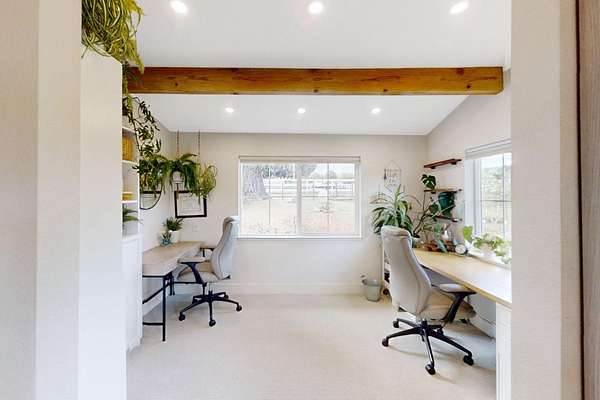 Charming, fully updated residence set on nearly 4 usable acres in one of Corralitos most desirable locations, just moments from Corralitos Market and Monte Vista School. Thoughtfully designed for both comfort and style, the home features a beautifully remodeled kitchen and bathrooms, a welcoming living room, four spacious bedrooms, and dedicated office space, all complemented by a detached two-car garage. Step outside to a fantastic backyard patio, perfect for entertaining or enjoying quiet moments surrounded by peaceful natural beauty. The expansive grounds offer a rare blend of refined country living and exceptional versatility. The sun-drenched pastures, open space, and sweeping views create a picturesque setting, while the usable acreage invites endless possibilities for horses, orchards, or outdoor living. Surrounded by privacy and scenic beauty, this exceptional property captures the essence of a ranch retreat that is peaceful, elevated, and effortlessly connected to the charm and conveniences of Corralitos.