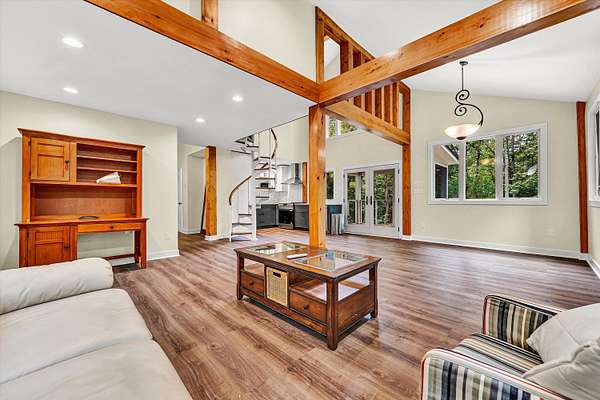 Est $4,474/moRecently completed lake cottage with lots of charm, screened in porch, first floor living plan and nestled in the center of a wooded 6 acre lot. Spring and stream on the property, dock design but not applied or approved. The property has a boat ramp and if off channel marker 61. Home is being sold furnished / turnkey