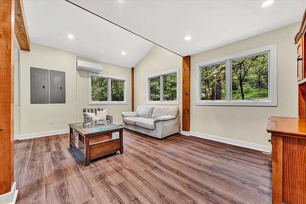 Est $3,855/moRecently completed lake cottage with lots of charm, screened in porch, first floor living plan and nestled in the center of a wooded 6 acre lot. Spring and stream on the property, dock design but not applied or approved. The property has a boat ramp and if off channel marker 61. Home is being sold furnished / turnkey