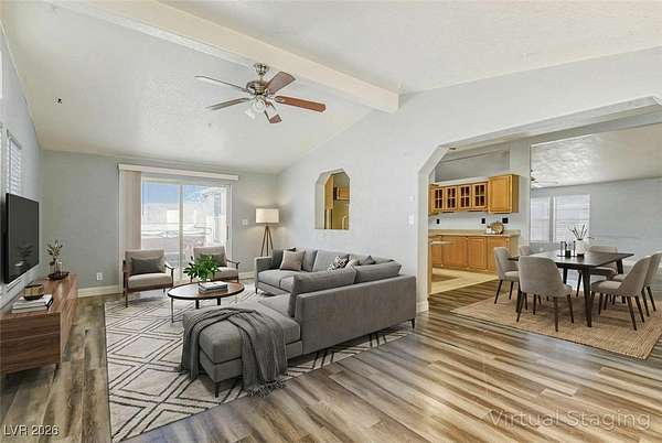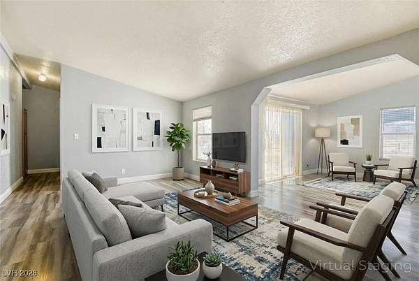 Est $1,770/moBeautifully upgraded horse property in Sandy Valley featuring new LVP flooring and fresh paint throughout. Every bedroom offers a walk-in closet for added comfort and storage, plus a private well. Spacious lot with room for horses, toys, and outdoor living in a peaceful rural setting just outside Las Vegas.
