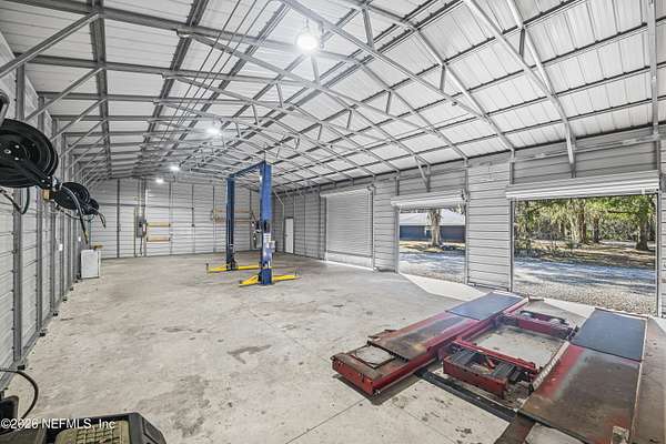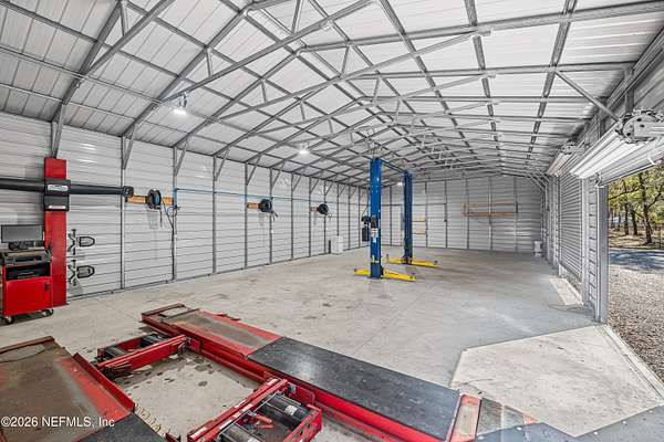 ACREAGE1800SQFT SHOPFULLY FENCEDINCOME POTENTIAL** This gorgeous 4 bed/3 bath home offers the ultimate retreat with tons of PRIVACY and peace and quiet on 3.4 ACRES. Surrounded by gorgeous trees providing a peacefully shaded front and backyard, this property is WELL MAINTAINED and move-in ready. Inside, you'll find a functional SPLIT BEDROOM FLOORPLAN with lots of stylish and thoughtfully curated details throughout, and a WHOLE HOUSE REVERSE OSMOSIS water filtration system. The living room boasts a stunning vaulted ceiling. The real showstopper is the stunning LARGE SCREENED-IN LANAI, with a vaulted ceiling and huge ceiling fans. One of the guest bedrooms and the master bedroom both have an extra BONUS ROOM within the bedrooms, plus a private entrance onto the screened-in lanai. Outside, the FULLY FENCED YARD with a GATED DRIVEWAY ensures security. For the POTENTIAL BUSINESS OWNER, the 1800sqft WORKSHOP/GARAGE provides endless storage, workspace, and potential to run your very own business right from home! Plus, it comes complete with an alignment machine, car lift, and industrial air compressor. Best of all? There is NO HOA. Schedule your showing today!