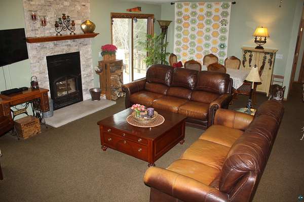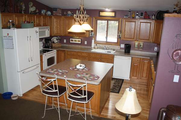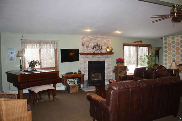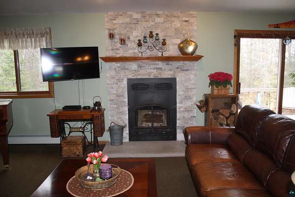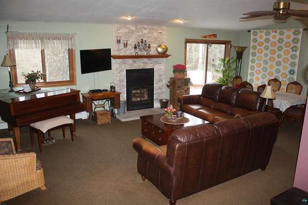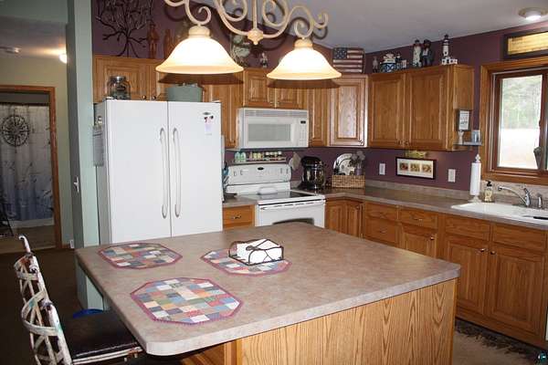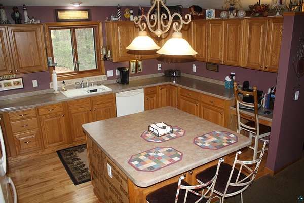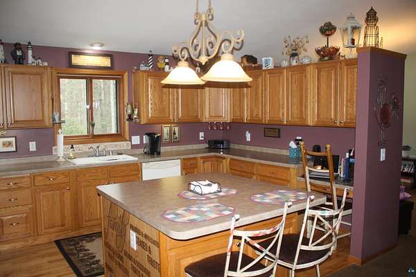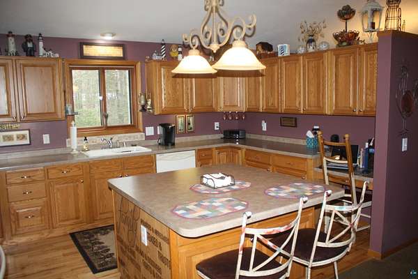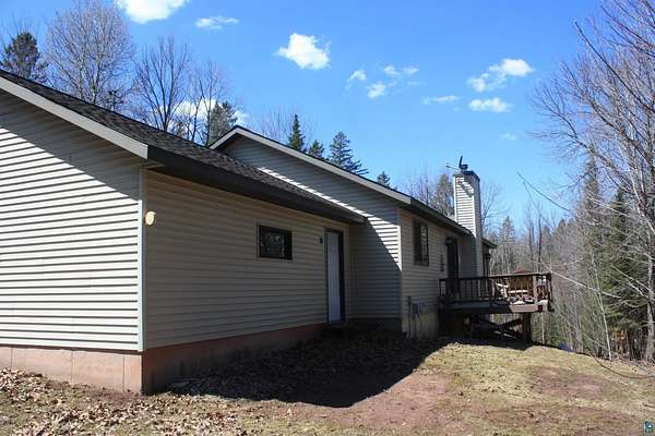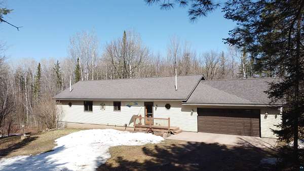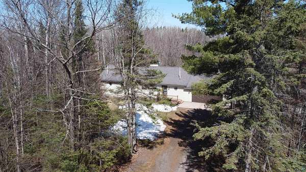 Nestled among a beautiful mix of hardwoods and towering pines, this ranch-style home offers the perfect blend of privacy and convenience, with easy commuting access to the Twin Ports as well as Ashland, Washburn, and Bayfield. Set on 40 heavily wooded acres featuring mature oak, popple, and a large pine plantation, the property provides a peaceful Northwoods setting with the potential for stunning Lake Superior and countryside views with selective clearing. Inside, the thoughtfully designed open-concept great room features a spacious living area centered around a charming wood-burning fireplace, ideal for gatherings, while the kitchen offers gorgeous oak cabinetry, a large center island, and ample storage. The main level includes a primary en-suite with private bath and patio door for future deck access, an additional bedroom, and a large full bathroom, along with a versatile formal dining area that could serve as a den or home office. A main-floor utility area with laundry hookups connects conveniently to the attached two-car garage. Enjoy outdoor living on the large deck, perfect for grilling or relaxing with morning coffee, while the full walk-out basement remains unfinished, offering a blank canvas to customize and build equity. This property is an excellent opportunity for a year-round home or private retreat with space, comfort, and endless potential.