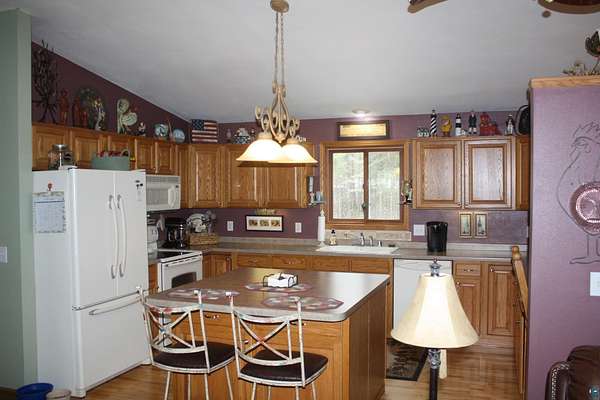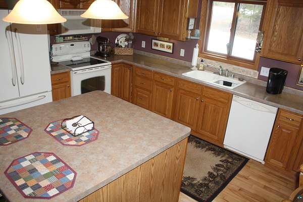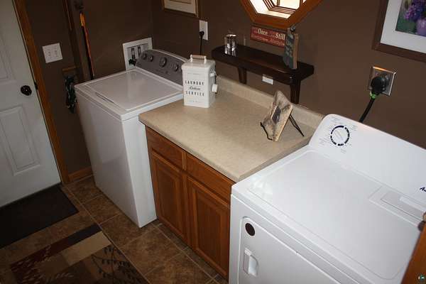 - Dryer Hook-Ups, Drywalls, Garage Door Opener, Kitchen Center Island, Main Floor Laundry, Natural Woodwork, Patio Door, Vaulted Ceilings, Washer Hook-Ups