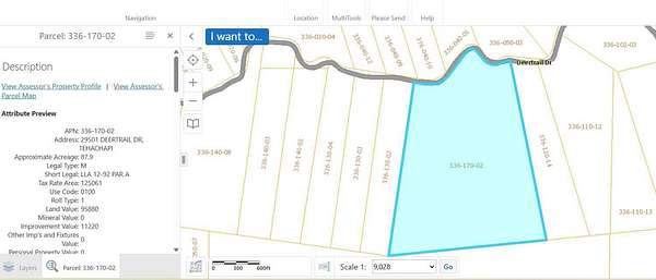 Est $1,409/moAlmost 88 acres with Million dollar Valley views and plenty of usable land! Value is in the Land only! Unfortunate previous fire loss, is your gain. This amazing lot has the most incredible views and a great pad for that Dream Home Build. Located in Bear Valley Springs, this gated -maned guard shack community has so much to offer, fishing, hiking, golfing, Equestrian Center and much, much more. Use as your weekend bug out or just take advantage of the community amenities, this land will never disappoint. Property has annual HOA's very affordable for what is available