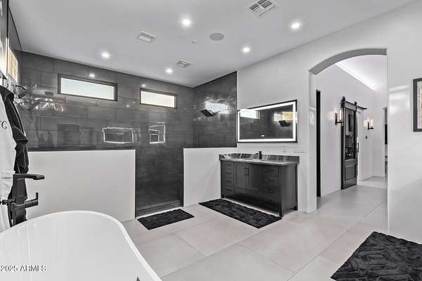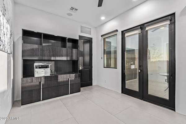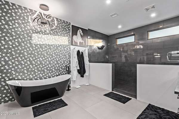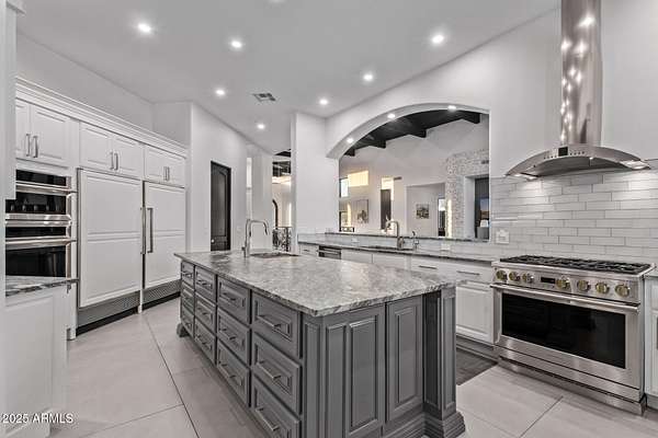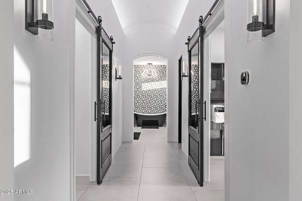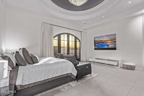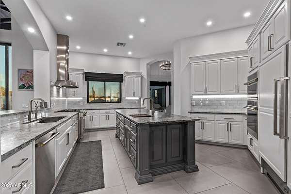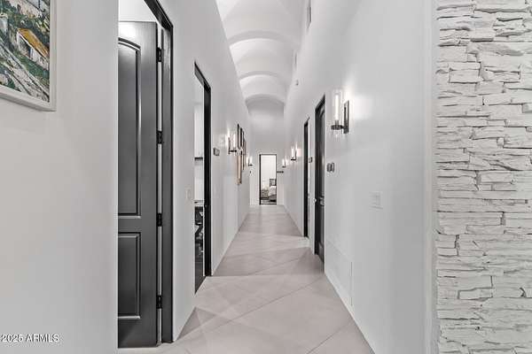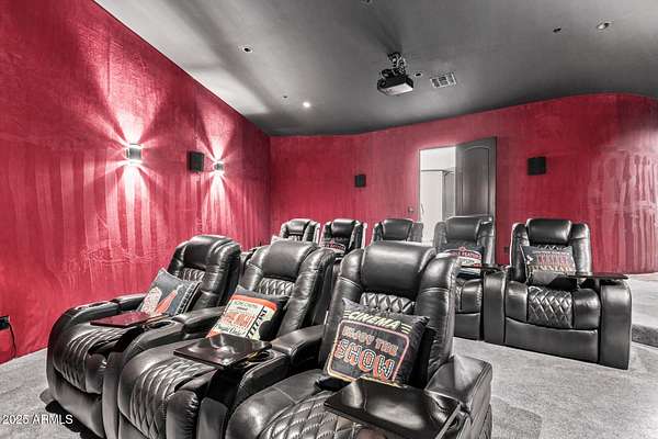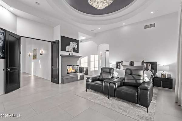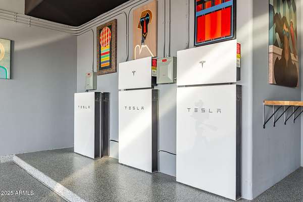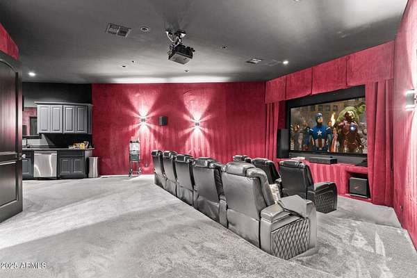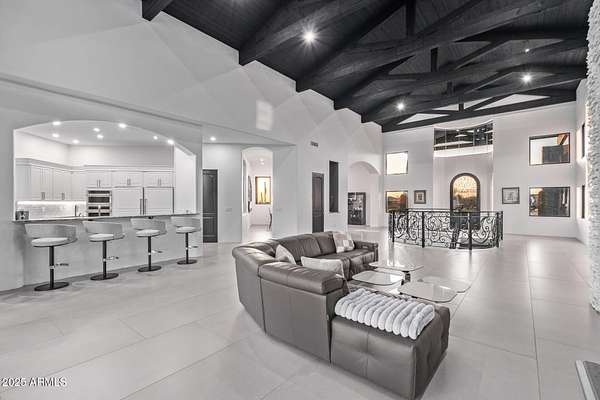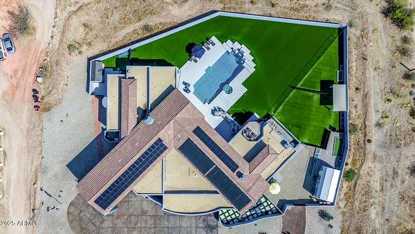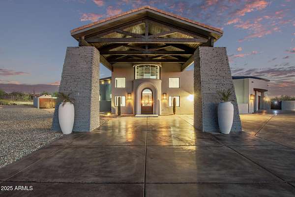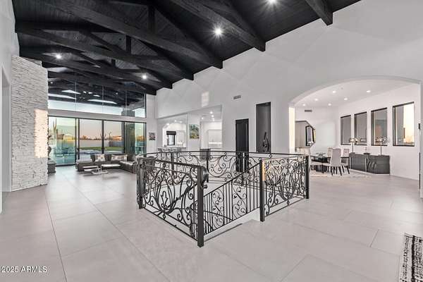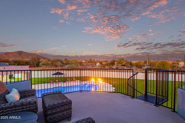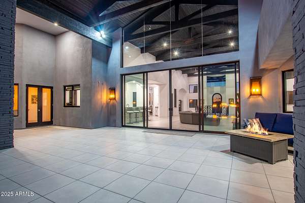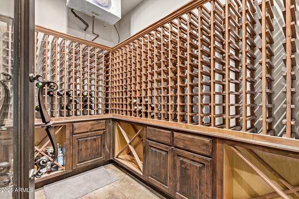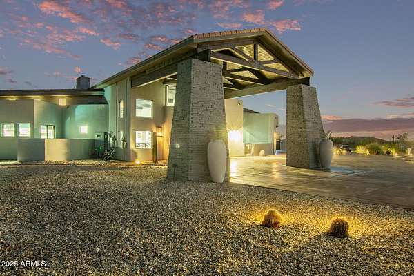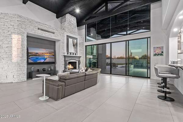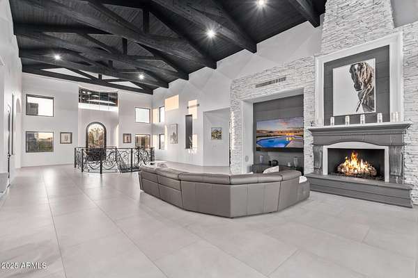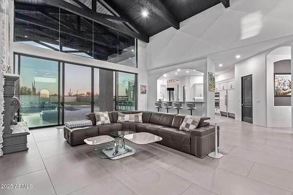 This impeccably designed custom estate seamlessly blends modern luxury with resort-style living. Set on a private 2.3-acre compound with no HOA, this masterpiece offers an unparalleled lifestyle. Priced under recent appraised value. From the moment you arrive, soaring exposed wood beam ceilings extend from the grand portico through the main living areas and out to the expansive back patio. Recently redesigned with contemporary elegance, this meticulously maintained home is move-in ready and perfectly positioned to capture Arizona's breathtaking sunsets, sparkling city lights, and majestic mountain views. Equipped with Tesla Powerwall units and owned solar panels, this estate is as energy-efficient as it is beautiful. Freshly painted inside and out, the home features brand-new tile fl and Restoration Hardware lighting, all seamlessly integrated with Control4 smart home automation. The gourmet kitchen is a chef's dream, boasting top-of-the-line built-in appliances, a gas cooktop with a custom hood, double ovens, a veggie prep sink, and new textured marble countertops, a sleek backsplash and under-cabinet accent lighting. The primary suite is a luxurious retreat, offering a cozy sitting area with a fireplace, 18ft ceilings, a completely redesigned spa-like bathroom, a custom walk-in closet, and a large refinished sauna. The backyard has been transformed into an entertainer's paradise with a private viewing deck to take in the stunning surroundings, extensive landscape lighting, lush turf, and a fully remodeled pool with expansive new tile decking. A brand-new outdoor kitchen, complete with a built-in BBQ, fridge, and sink, enhances the space, while fire bowls, a fire pit, and multiple seating areas create the perfect setting for outdoor gatherings. Plenty of room to add pickleball/sport court(s). The fully finished basement provides additional living and entertainment space, featuring a state-of-the-art movie theater, a full kitchen, a bonus/workout room, a bathroom, and a temperature-controlled 800-bottle wine cellar & tasting room. An oversized four-car garage with new epoxy floors, a reverse osmosis system, a water softener, and new tankless water heaters completes this exceptional home. Designed for the most discerning buyer, this estate offers the ultimate in luxury living. Pour a glass of wine, unwind, and experience the finest that Arizona has to offer. (Zoned for horses with room to add stalls, pen, etc..)