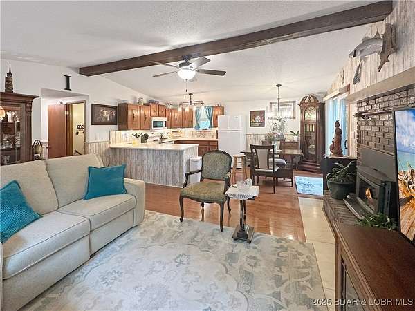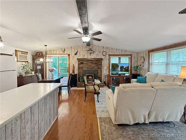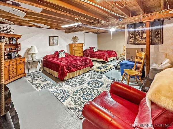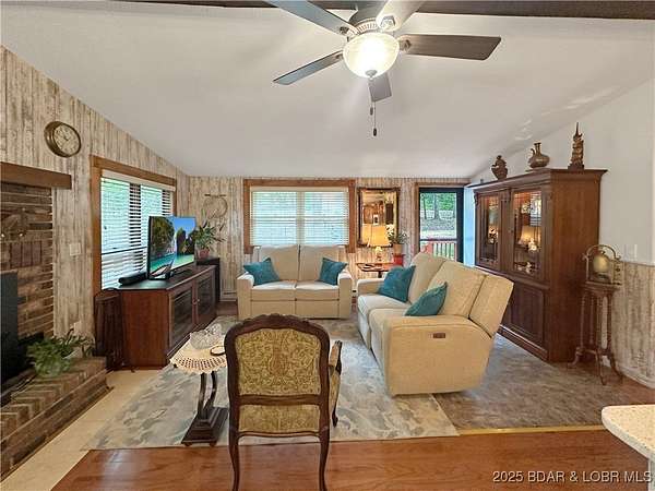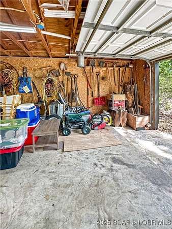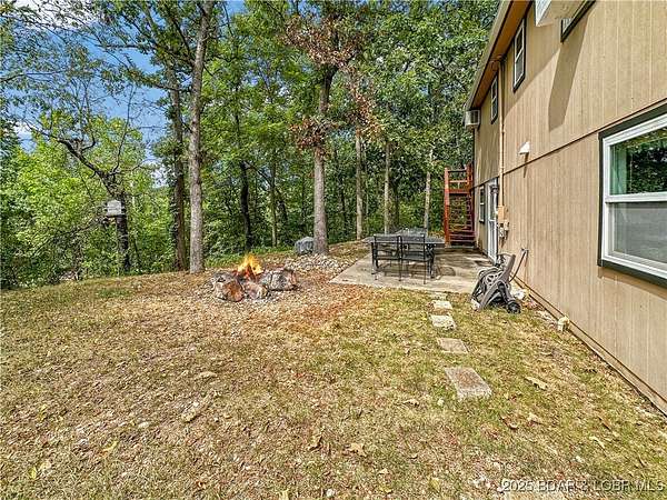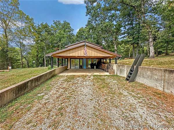 Discover your lake retreat in Edwards, MO! This updated home sits on approx. 3 +/- private acres with a natural setting and seasonal Lake of the Ozarks views. The community boat ramp is just steps away-perfect for fishing and lake fun! Recent upgrades make this home move-in ready: freshly stained decking, two remodeled bathrooms with a heated jetted tub featuring lighting and waterfall features, an updated kitchen, living room, and hallway, plus a brand-new septic system. The full walk-out basement offers a second kitchen, a non-conforming 3rd bedroom, a full bath, and a large storage area with two sets of French doors and a back entry-easily finishable for extra living space. Enjoy the landscaped yard, cozy firepit, patio, and plenty of deck space for BBQs. Parking is abundant with a 2-car carport and a detached 4-car garage with pull-through doors, workbenches, and storage shelves. With its private setting, generous acreage, and space to grow, this property is a rare find for lake lovers!