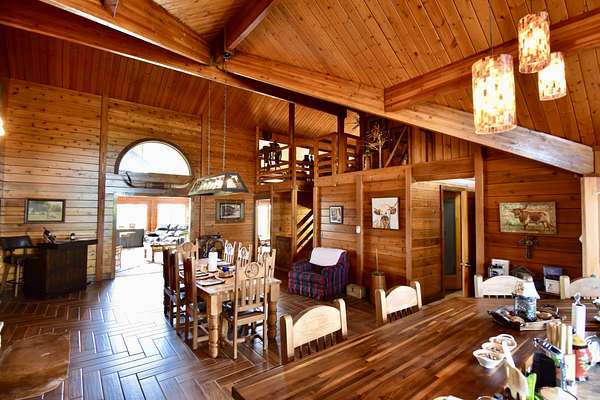 With vaulted ceilings and log beams spanning throughout, this 3,050 sq. ft., red cedar home, complete with 4 bedrooms and 2.5 baths, is as beautiful as it is practical for any future buyer's vision. When entering the main level, you are greeted with a large gourmet kitchen and dining room in the heart of the home. A large loft overlooks the dining room and office providing ample space to entertain in an additional cozy inside setting. Vaulted ceilings carry into the main level master bedroom where you will find a dual sided fireplace that opens into the large master bath complete with a jacuzzi tub and large shower. An open floor concept carries into the finished walkout basement where 3 additional suites can be enjoyed alongside a large entertaining area, full kitchen, and full bath. Two mini-split units help keep the home cool during the summer months and heated in the winter with a multi-zone radiant in floor heat system. A finished, 3 stall attached garage with vaulted ceiling offers 2, 8 ft. overhead doors and a 10 ft. overhead door. Just outside of the garage, there is a RV hookup for visitors traveling through, as well as a whole house generator.