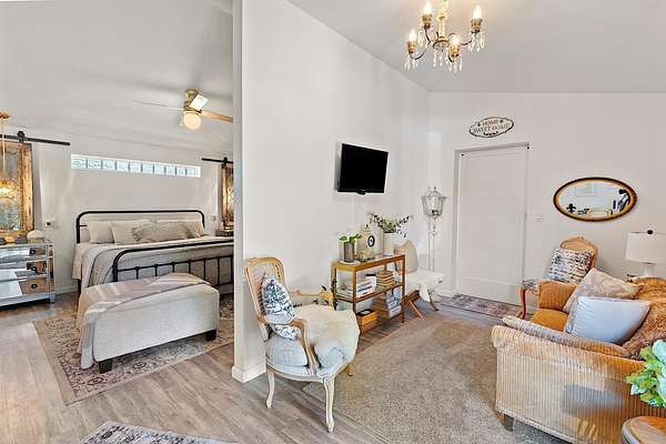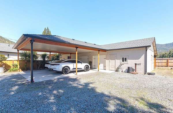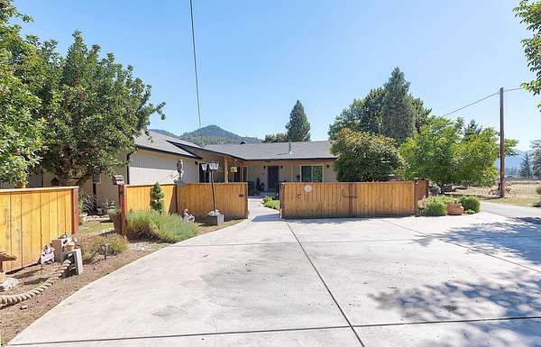 Welcome to your own private mini farm on 4+ fully usable acres, blending modern comforts with country charm. This gated, fully fenced and cross-fenced property is ready for animals, farming, or simply enjoying the land, complete with mature fruit and nut trees, garden, two wells, and irrigation. The meticulously updated home features new electrical, plumbing, roof, split systems, and expanded beautiful living areas including new flooring, lighting, amazing finishes, and an additional primary suite with it's own sitting area and kitchenette/laundry room. Outdoors, relax on the covered porches while soaking in the panoramic views. A detached garage with bonus room and laundry, 4-car carport, RV cover with full hookups, and a spacious barn/workshop offer endless versatility. This unique property is perfect for agriculture, hobbies and multi-family living and offers even more room to grow -- all just minutes from Grants Pass and Medford. Don't miss out on this incredible property!