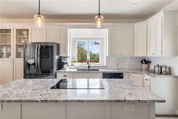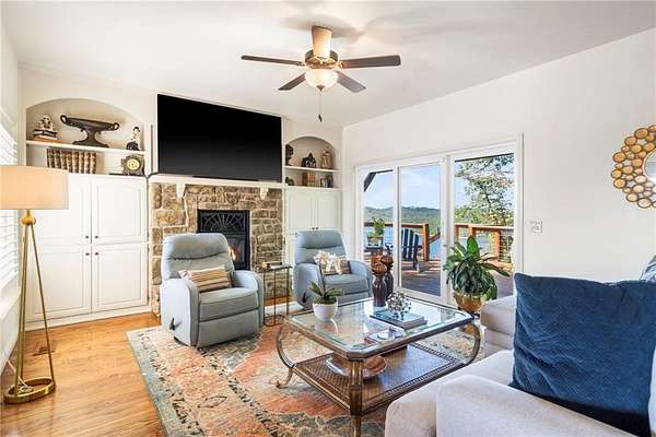 Experience the beauty of lake living in this stunning home overlooking the sparkling waters of Beaver Lake with private dock (11x30 slip). Designed to capture breathtaking views from every room, this property offers the perfect balance of comfort, style, & serenity. Step inside to find spacious open concept living areas, large windows flood the home with natural light, & a modern kitchen with high-end appliances & finishes, perfect for entertaining family & friends. The primary suite features a deck with panoramic lake views, creating a peaceful retreat after a long day on the water. Outside enjoy the expansive decks and outdoor living spaces, ideal for morning coffee or evening sunsets. With easy access to the lake, nearby Lost Bridge Marina, & miles of scenic shoreline...this home offers the ultimate lifestyle, and most furniture will convey. A charming Casita completes this property, ideal for hosting visitors! Includes a gym, 2 bedrooms, & full bath. Large storage facility behind Casita for water toys or boat.