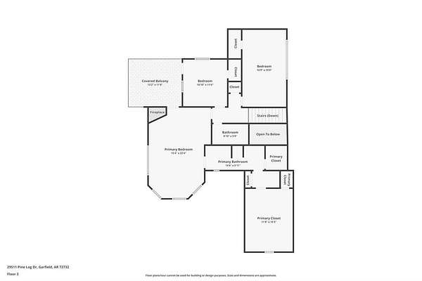 Hwy 62 to Garfield, turn onto AR127, past Lost Bridge Marina turnoff (Marina Road) 127 turns into Pine Log Road traveling to Armadillo Road, turn right, continue on Armadillo Road to Pine Log Drive, turn left and continue approximately 3/4 mile to gated entrance on left. 29511