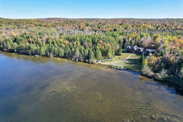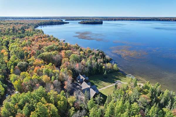 Family Compound, Corporate Retreat, or the Ultimate Legacy Property! Experience refined Northwoods living with 1,022' of pristine ripple sand frontage & 61+ acres on one of Phelps' premier Class-A musky lakes.This estate truly defines perfection. A gated entrance & paved drive lead to the impressive main residence featuring 4BD/3.5BA, lakeside balconies, a soaring stone fireplace, high-end appliances, & exceptional space for entertaining. The level, sun-drenched yard offers a perfect lakeside setting. Two massive heated garages & an additional storage building provide abundant utility. Above the lakeside garage sits a 1BD/1BA apartment, while the back garage hosts a spacious 3BD/1BA living area. Both the home & back garage have their own well, septic, utilities, & generator. A private trail winds through the adjoining acreage with a scenic bridge for UTVs & snowmobiles. Ultimate privacy, endless recreation, & unmatched opportunity, this one has it all! See docs for addt'l details
