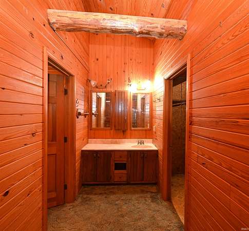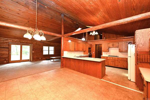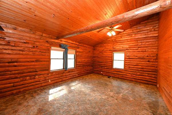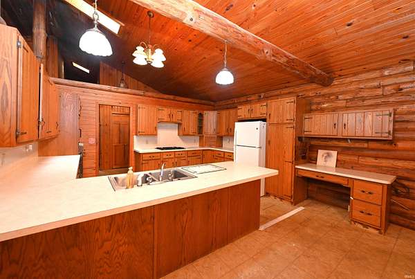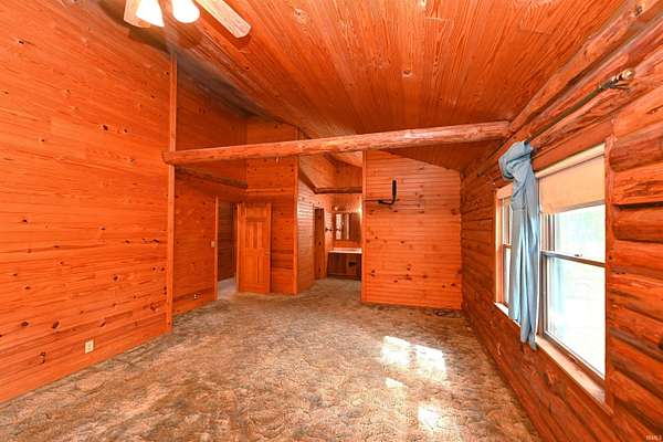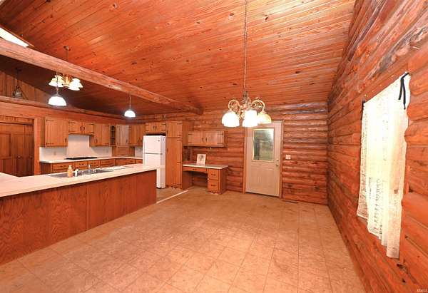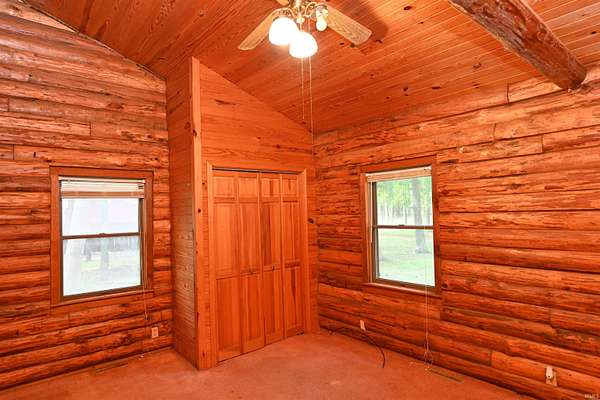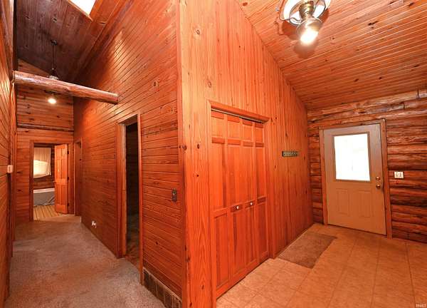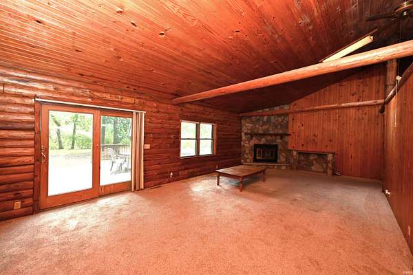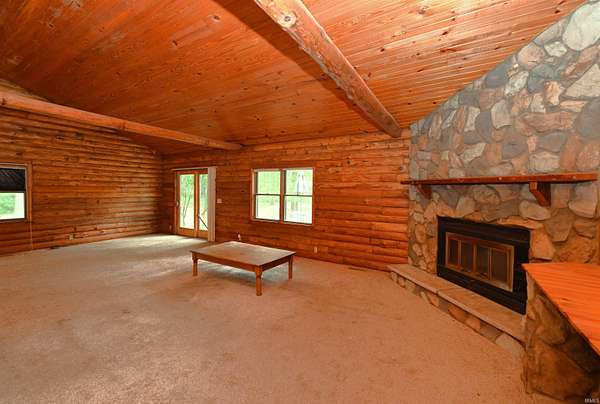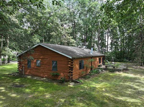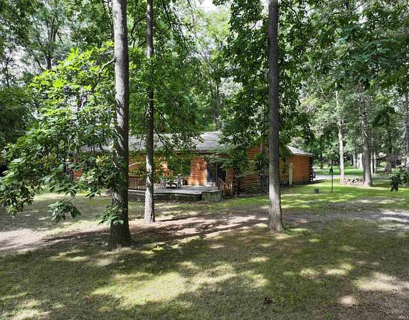 Discover the joy of creating lasting memories in this charming log cabin, beautifully nestled along the Tippecanoe River. With 1.62 acres and over 240 feet of river frontage, this one-story home features a spacious open-concept living area. The vaulted ceilings and sliding glass door lead to a deck offering river views. Inside, the warmth of the logs and the wood-burning fireplace create a cozy atmosphere, perfect for cuddling up and enjoying movies during the winter months. As the weather warms, the ample outdoor space invites you to fish along the riverbank, boat, and play in the water. The generous primary bedroom suite includes a walk-in shower and laundry facilities, while an attached garage provides additional storage space. Located just a few miles from Winamac, this home offers a serene country ambiance while still being conveniently close to town.