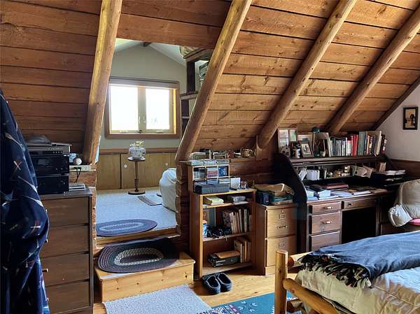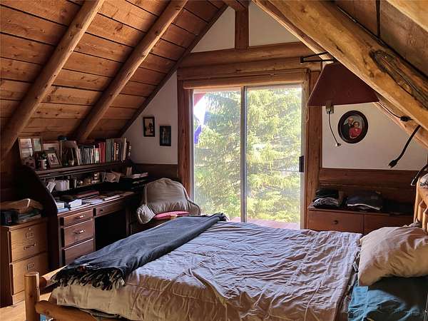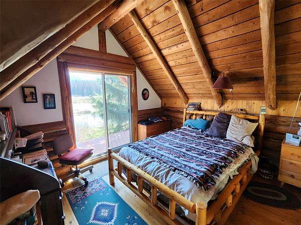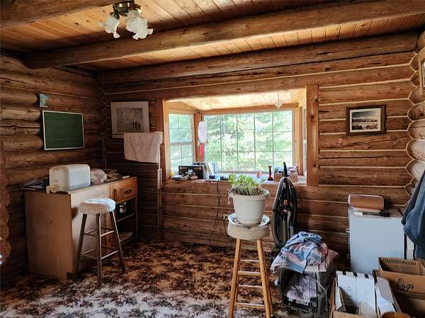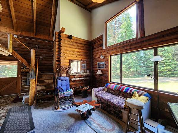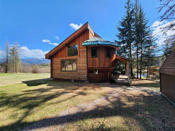 Tucked away at 29520 Yaak River Road, this old-world log home sits on the majestic and mighty banks of the Yaak River, thinly veiled by mature conifers and the wild river foliage that borders this gorgeous waterway. One of the largest properties (consisting of three parcels) of river frontage that is in close proximity to the town of Yaak, this large property retains the convenience of the Yaak Mercantile, while simultaneously being completely wild and private, with no visual intrusion of neighbors near the home. This unique log home possesses a one-of-a-kind corner turret within its construction, and although the footprint of the home is not overwhelming, you'll be impressed by the open feel once you enter. The living room's open ceiling lets light radiate all the way up, with floor to ceiling windows letting the light flood in and combines with the beam and wood ceiling creating an atmosphere of cozy grandeur. The separate dining area has a bay window that allows you to lose tract of time as you gaze upon the river to the south. The river views, sunlight, and southern exposure continue in the kitchen, so make sure you don't let the food burn while you are distracted by the beauty of the Yaak River Valley right out your back door. Imagine waking up in your bedroom, greeted by the rustic charm of both a log wall and a wood wall and gorgeous views, which showcase a delightful dance of nature's artistry. This residence was purposely built as an off-grid residence, but there is power close by if you prefer to be on the grid. This lot also boasts an often sought after smooth transition down to the river, allowing easy access for fishing, swimming, or launching your watercraft. A large grass lawn, a fully fenced garden area, and ample additional land to expand your Montana dreams are just a few of the additional benefits of this parcel. If you want to be a rugged all year resident of the Yaak, take solace in the reality of the detached heated and partially insulated shop and garage, which will allow you to craft the winter away in comfort, with ample room to work on multiple projects. A shed stands ready to house your tools and toys, while the deck provides the perfect stage for outdoor gatherings. With its mountain view and waterfront access, this Montana treasure is a ticket to a life less ordinary. This property meets the desires of the pioneering spirit and captivates the soul with its limitless beauty and recreation.