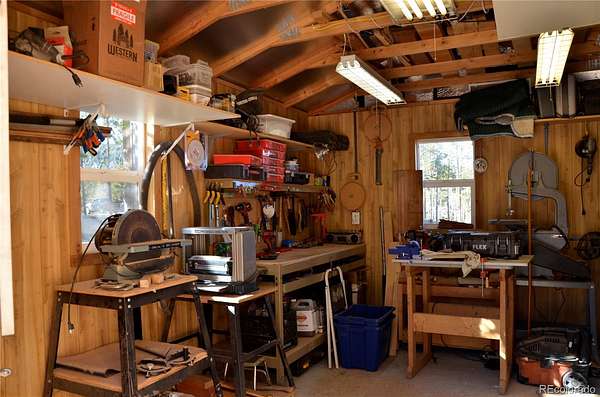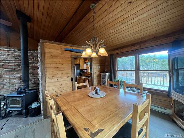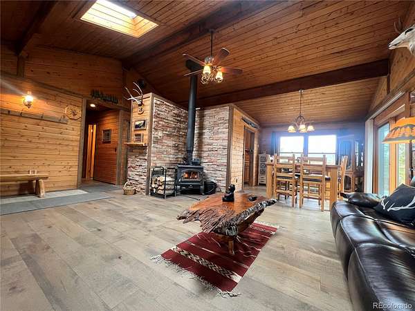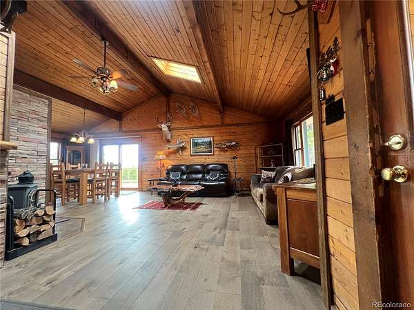 Welcome to a peaceful setting with incredible views to the west and north and even Mt. Blue Sky. This mountain cabin log house offers a ranch floor plan of 3 bedrooms and 2 baths with large decking. There is 2 acres to roam around and enjoy the wildlife such as deer, elk, fox, bear, moose and wild turkeys once in a while. Also many species of birds to enjoy their sounds. The land is flat and usable with storage sheds and an insulated workshop. With the elevation around 8,530 feet. This is a well cared for home with attention to detail such as a newer roof, stained exterior, new electrical service panel that has a whole house surge protector, painted outbuildings. There is a free standing wood stove for added comfort. Located near the Flying J Ranch and outdoor activities of hiking, biking.