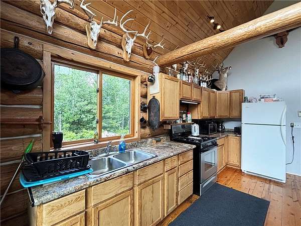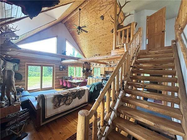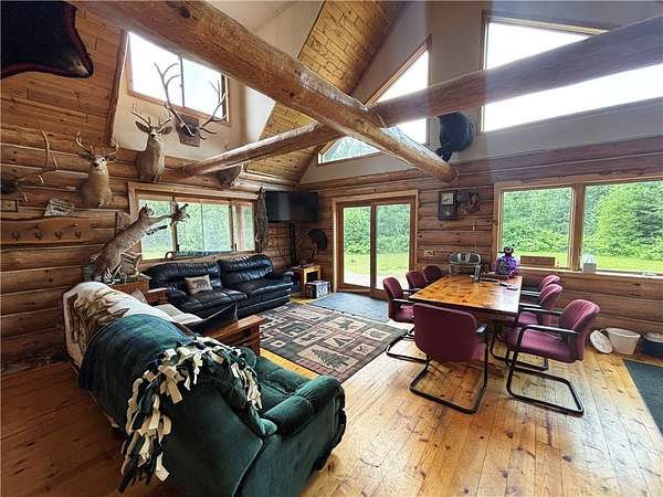 Escape to peace and serenity with this inviting 2-bedroom, 1.5-bathroom cabin tucked away on a tranquil 5.18-acre lot. Crafted with Swedish cope logs, this home blends rustic charm, comfort, and seclusion. Surrounded by over 3,800 acres of State and County land, it's a true hunters paradise and ideal for off-grid living or outdoor adventure. With direct access to nearby ATV trails, exploration is always at your doorstep. Inside, you will find log accents and an open-concept main level flowing between kitchen, dining, and living areas. The cozy loft offers extra space for sleeping or relaxing, and the dry, unfinished lower level, already plumbed for an additional bathroom, offers great potential for customization. With no close neighbors, you'll enjoy unmatched privacy and the soothing sights and sounds of nature. Whether you're seeking a private getaway, hunting base, or peaceful escape, this cabin is the perfect place to unwind. See MLS 1592322 for an additional chance to own 486.02 acres!