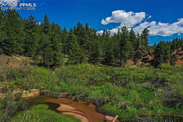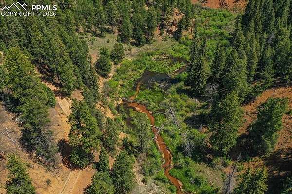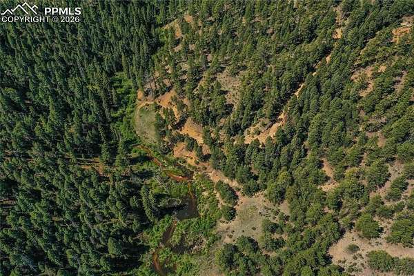 A Creek runs through it! This is your chance to own a mountain stretch on 51.46 acres of Colorado Wilderness. Very private and STUNNING Pikes Peak views on top of the property on what is known as Eagle Point. This acreage spans from ridge to ridge! This private access land bordering Pike National Forest on 3 sides with 500+/- ft. of Rule creek running right through it, is what you've been dreaming of! Plenty of abundant wildlife; bear, trophy elk, trophy mule deer, moose, coyote, fox and the rare Ringtail Cat have all been caught on trail cams on a regular basis. National Forest road is maintained until you enter private land, which you will find to be perfectly remote, but a short 17 min drive to all the conveniences of Woodland Park's town center. Zoned A-1. The long stretch of fresh water from Rule Creek flows at the bottom valley area of the property. This crystal clear water has Brook Trout and many different wildlife visiting the raspberry lined creek banks. The vast views from the top of the ridge is one possible building site which includes large rock outcroppings, as well as unobstructed views of Pikes Peak and an overview of the entire property down to the valley. This historical property was known to have liquor run through these parts during Prohibition, with obvious evidence that has two cars from the early 1900's and remnants of old homesteads still existing in the valley area of the property. All wheel drive vehicle is required during the winter/snow months. Owners Maintain dirt road through the entire property including a road that runs all the way to the top of the ridge. Electricity could be tapped via adjacent properties or solar would be ideal at the ridge site. This could be your private retreat or a family compound. Currently Gated for privacy, all showings must be scheduled due to private roads. Call Agent today for your private showing. ILC available.