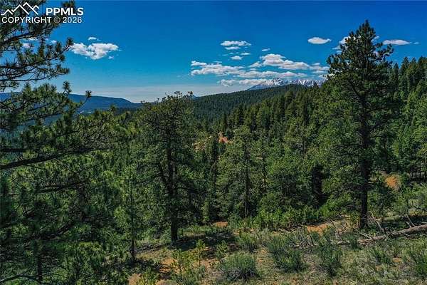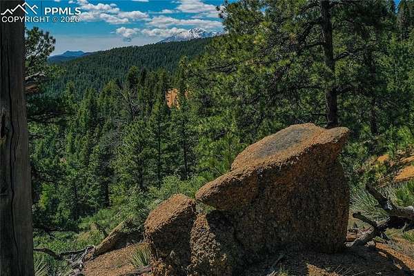- Borders Natl Forest, Hillside, Level, Meadow, Mountain View, Rural, Sloping, Stream/ Creek, Trees/ Woods, Vacant Land, View of Pikes Peak, View of Rock Formations