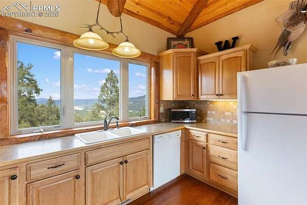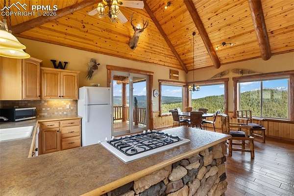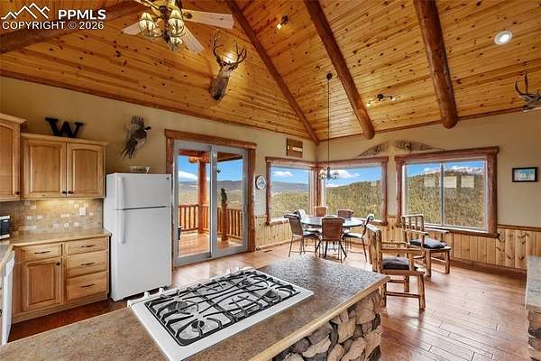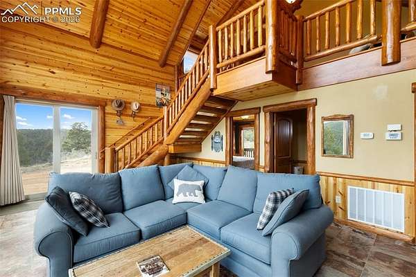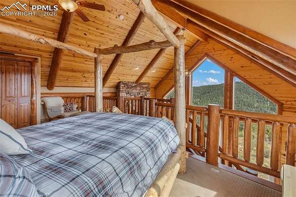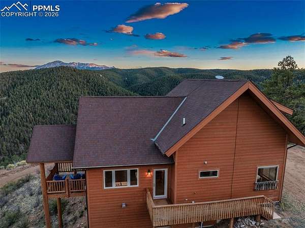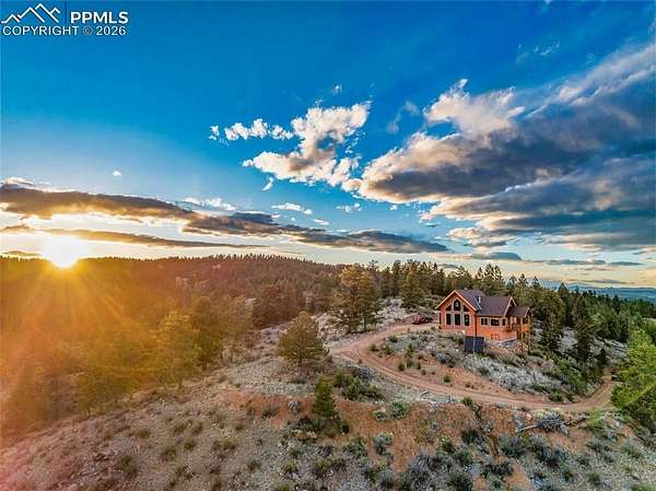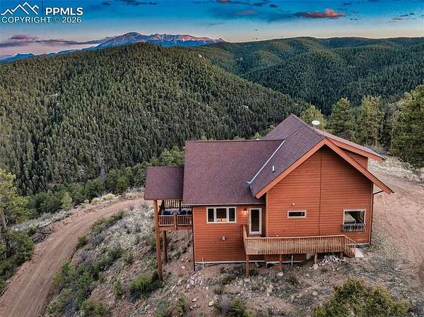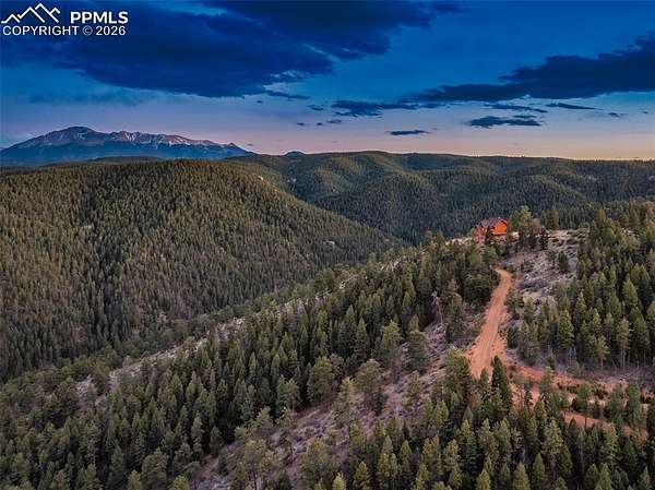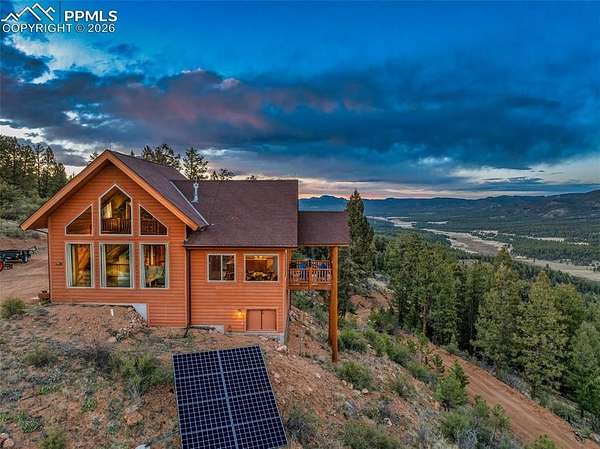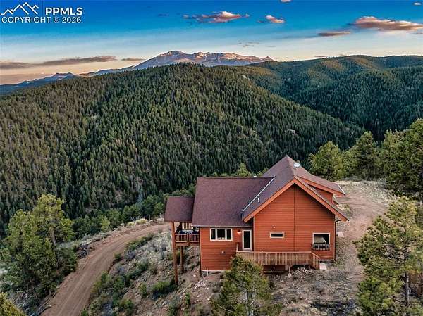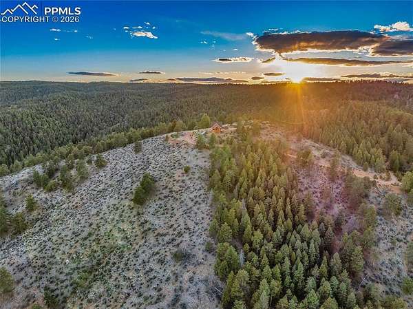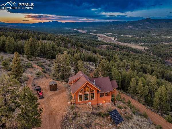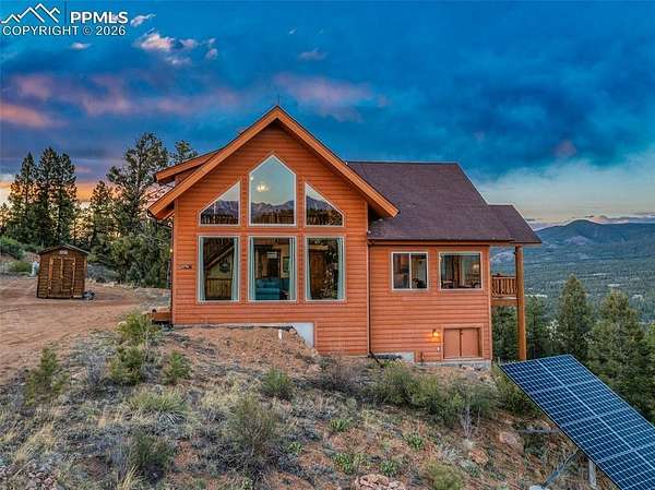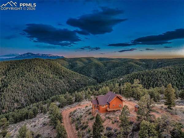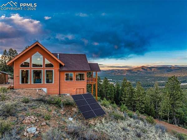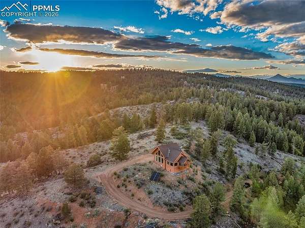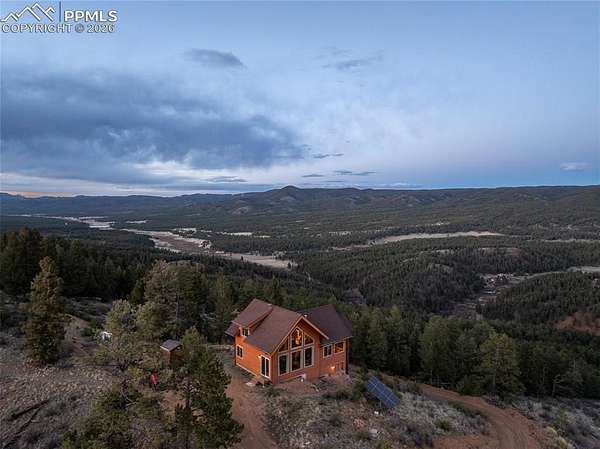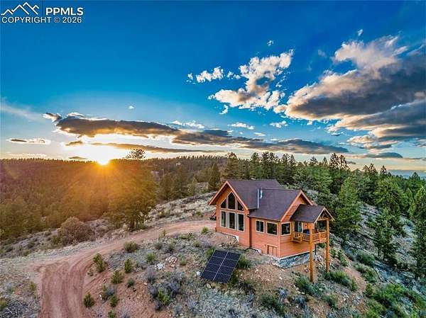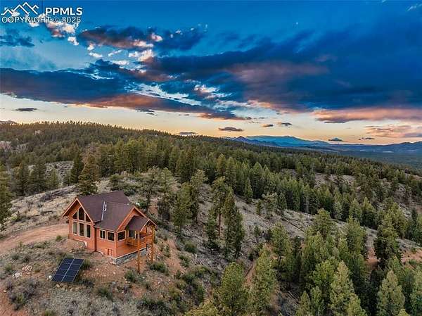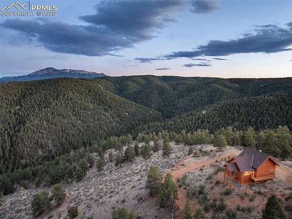 49.64 acres. Completely off-grid. Just 52 feet from the Pike National Forest. Spectacular 360-degree mountain views in every direction. This is the Colorado mountain property you have been searching for. Tucked away with total privacy yet only 10 minutes from downtown Woodland Park, this 2 bedroom, 1 bathroom, 1,480 square foot off-grid home sits on nearly 50 acres of pristine Teller County land. Whether you are looking for a mountain retreat, a homestead, or a forever home surrounded by nature, this property delivers on every level. Step inside to find hand-peeled beams and custom woodwork throughout, a stunning two-sided gas fireplace, and the warmth of true mountain craftsmanship. The home was constructed with green built structural insulated panels for superior energy efficiency, finished with durable Hardyboard siding and equipped with lightning protection on the roof. The off-grid power system has been fully upgraded with a 24-volt solar array featuring new panels, a new inverter, and three new lithium ion batteries. A backup generator and on-site propane provide additional reliability year-round. The well produces an exceptional 7 gallons per minute, and Starlink satellite internet is included for high-speed connectivity in even the most remote settings. Outside, the land is nothing short of breathtaking. Live water flows through the property along a creek, attracting abundant Colorado wildlife including moose, bear, elk, and deer. With direct access to National Forest trails from your doorstep, this is a paradise for hiking, hunting, horseback riding, and outdoor recreation in the Pikes Peak region. This is one of the most unique off-grid properties for sale near Woodland Park, Colorado. Seller is willing to negotiate on furnishings and a tractor to make this a truly turnkey mountain living experience. Schedule your private showing today.
