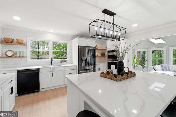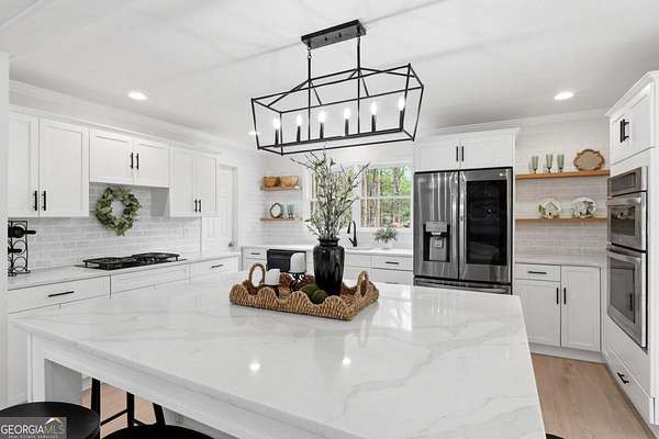 Private Estate Retreat in Cumming - Fully Renovated, No HOA Tucked away on two beautifully landscaped acres surrounded by mature hardwoods, this exceptional property offers the perfect blend of comfort, style, and total privacy. Fully renovated from top to bottom, the home showcases updated, luxury-feel finishes throughout-creating a true turnkey living experience. The expansive, fully fenced backyard provides a peaceful retreat ideal for relaxing, entertaining, or enjoying time with pets. Inside, the open-concept kitchen and dining area, with beautiful now quartz countertops, flow effortlessly to a spacious deck overlooking the serene landscape. A standout feature of the home is the stunning sunroom, filled with natural light and offering picturesque views of your own private oasis of mature trees-perfect for a quiet morning, cozy sitting area, or inspiring home office. The fully finished terrace level offers flexible living space ideal for a media room, game room, or guest retreat, full bathroom and plenty of additional storage. A detached outbuilding with electricity and climate control provides endless possibilities for a workshop, studio, or private office. Conveniently located near GA-400 and Hwy 20, within sought-after Forsyth County schools, and just minutes from Lake Lanier and North Georgia's mountains. Peaceful, private, and beautifully updated-no HOA.