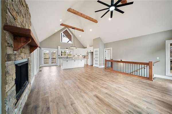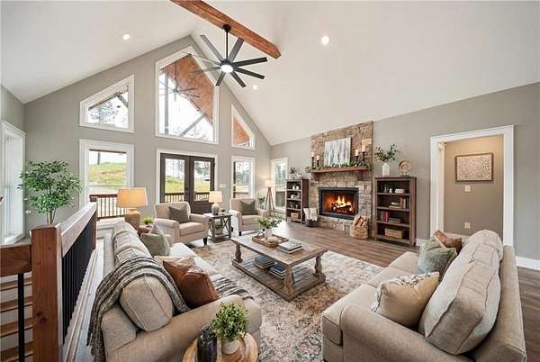 Welcome to this custom-designed mountain retreat currently being built in the gated community of Creekside Crossing in Talking Rock. This is more than just another cabin - it's a thoughtfully crafted, versatile getaway where no detail has been overlooked and every design choice reflects quality, intention, and timeless mountain elegance. Set on 3.76 gently rolling acres, this 4-bedroom, 3-bath home blends elevated craftsmanship with warm, inviting charm. The main level offers effortless living with a spacious primary suite designed as a true retreat, and two additional bedrooms with two full baths. The open-concept kitchen and great room flow seamlessly together, creating the perfect setting for entertaining, relaxing by the fire, or simply enjoying peaceful mountain views. A well-positioned laundry room/mudroom on the main level adds everyday convenience. The fully finished terrace level nearly doubles your living space, featuring a stunning open living area with full wall wet bar, plus two additional bedrooms, a full bath, a generous recreation area - ideal for guests, extended family, or a secondary living space. Whether you envision game nights, movie evenings, or hosting long weekend visitors, this lower level offers both flexibility and comfort. Outdoor living truly shines here. Expansive covered porches and decks invite you to unwind and take in the natural beauty surrounding you. From morning coffee to sunset gatherings, the setting feels private, serene, and intentionally designed to embrace the mountain lifestyle. Creekside Crossing offers a gated, amenity-rich mountain experience with access to Talking Rock Creek, UTV-friendly and hiking trails, and a brand-new clubhouse featuring a sundeck and infinity pool with breathtaking mountain views. Just minutes from Carter's Lake and conveniently located near Ellijay, Jasper, and Blue Ridge - with an easy drive to both Atlanta and Chattanooga - this home offers the rare combination of privacy, craftsmanship, recreation, and accessibility, making it ideal as a full-time residence, luxury getaway, or investment opportunity. *Lighting, quartz countertops and quarts backsplash, fixtures, and fireplace stonework have been added since pictures were taken. Also exterior entryway and back lower level sitting area have added stacked stone veneer. The result is a truly breathtaking home where no detail has been overlooked. Only 45 minutes from Canton and 1.5 hours from Atlanta - this really is a perfect retreat. (Images marked "Concept Images" are for illustration purposes only. Actual finishes and selections may vary).