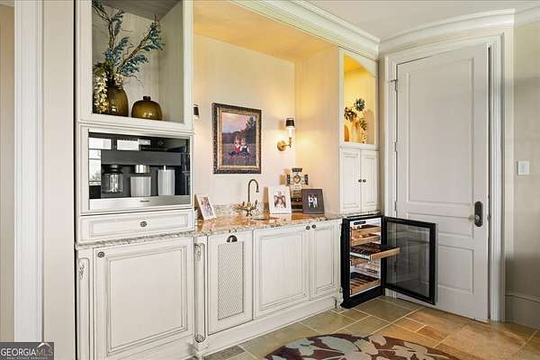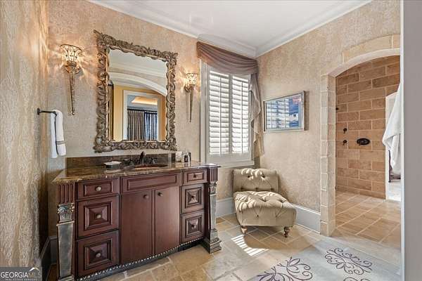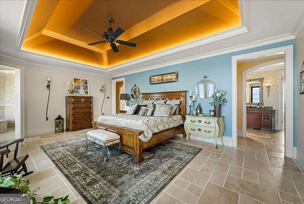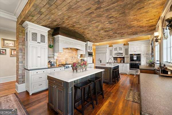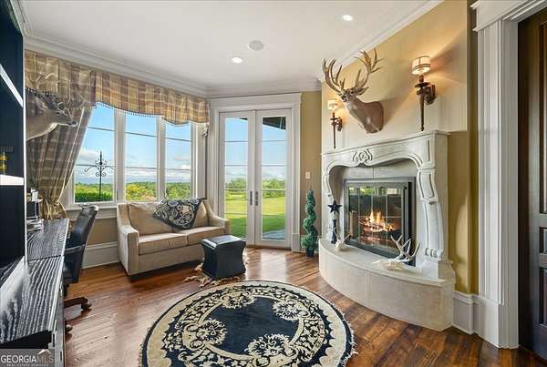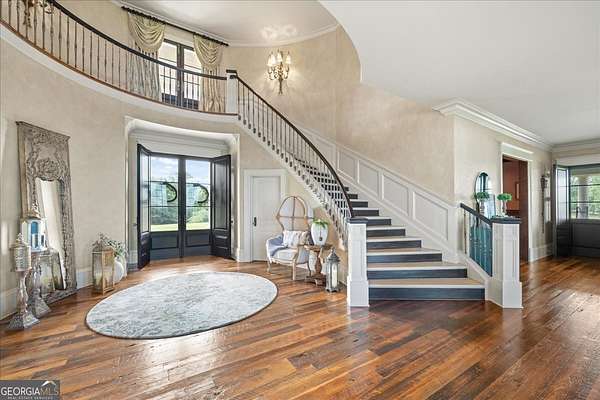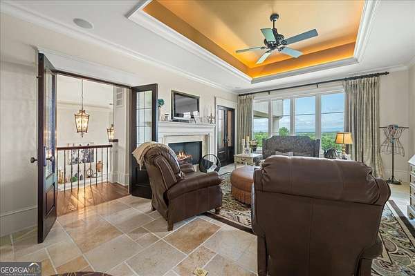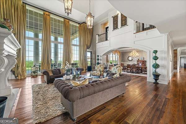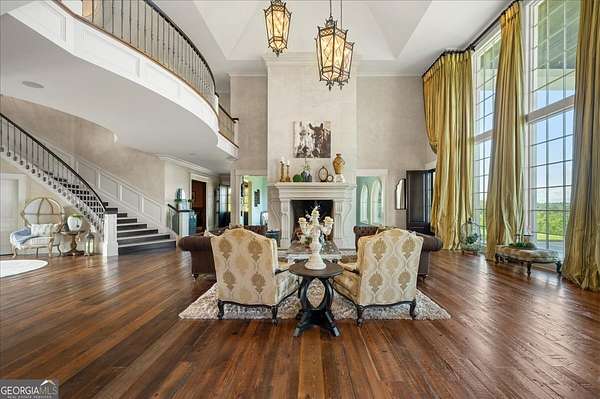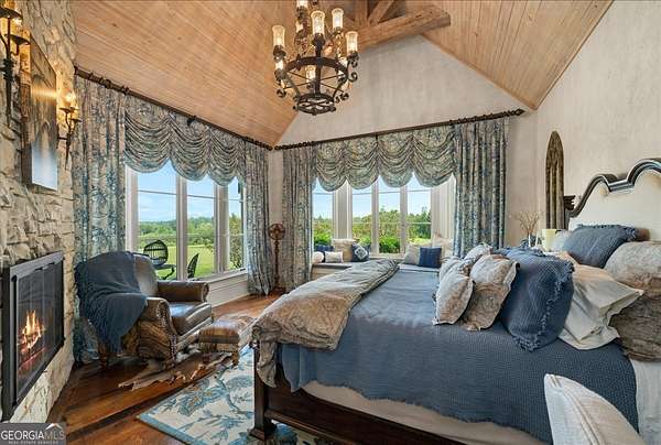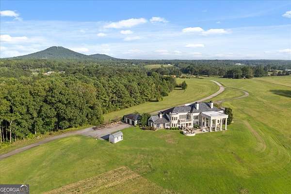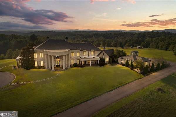 Perched atop 40 acres of pristine South Carolina countryside, The Castle on the Hill is a breathtaking architectural masterpiece inspired by a historic Italian castle. Every inch of this one-of-a-kind estate has been thoughtfully crafted to deliver luxury, grandeur, and timeless beauty. This majestic stone residence spans approximately 8,000 square feet and greets you with an unforgettable presence-stately stone columns, a slate tile roof, and double mahogany doors set the tone for what lies within. Upon entry, you're welcomed by a soaring 28-foot-tall foyer crowned with an Italianate dome and anchored by a stunning limestone staircase. The entire home is a study in custom craftsmanship, from the hand-selected Utah stone exterior to the reclaimed North Carolina barnwood flooring that flows throughout. The Grand Room features a floor-to-ceiling limestone fireplace-also 28 feet in height-one of five fireplaces that grace the home, creating a warm and regal ambiance throughout. With five bedrooms and five luxurious bathrooms (three en-suites), this residence is designed for both family living and lavish entertaining. There's a spacious two car detached garage with direct access to the house as well as additional space within the barn for storing five or more additional vehicles is desired. The chef's kitchen is nothing short of extraordinary, outfitted with a natural gas Viking cooktop, Sub-Zero refrigerator, wine chiller, refrigerated drawers, dishwasher drawers, and rich custom wood cabinetry. Dual kitchen islands feature striking marble countertops, while the surrounding cabinetry is finished in durable, leathered granite. Entertainment and comfort abound in the home's custom theatre room, complete with coffered ceilings and built-in wood cabinetry. Spa-inspired bathrooms feature marble and hand-laid tile, delivering the utmost in relaxation and style. Nearly every room is designed to frame sweeping, panoramic views of the Blue Ridge Mountains-spanning South Carolina, North Carolina, and Georgia. Outside, the grounds offer even more to explore: a stocked pond, acres of pastureland, forest trails, and a serene creek. A 5,000-square-foot barn with caretaker's quarters completes this remarkable estate. The Castle on the Hill is not merely a home-it's a legacy property, where Old World inspiration meets modern luxury in a setting that is nothing short of spectacular.