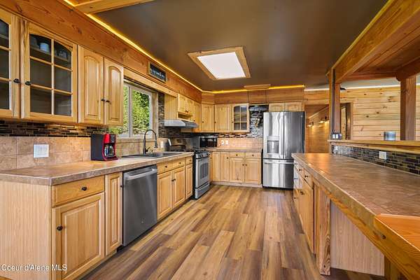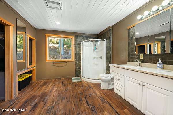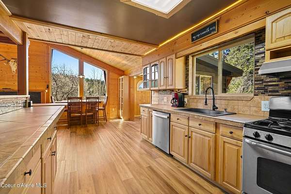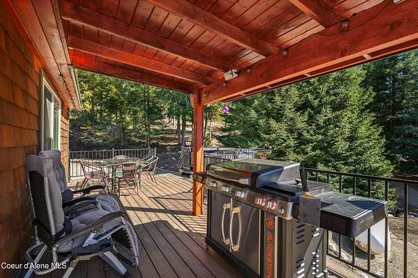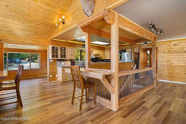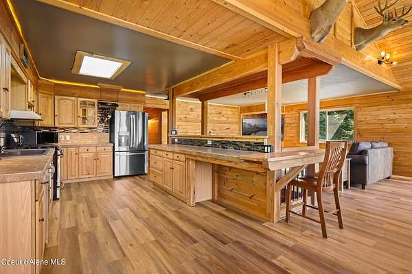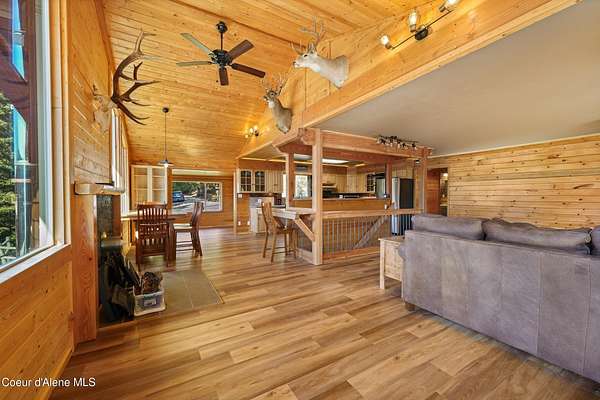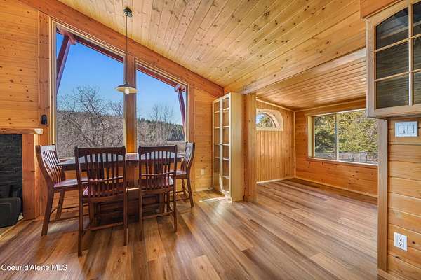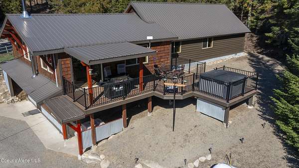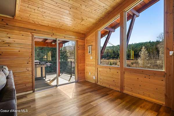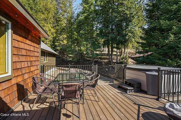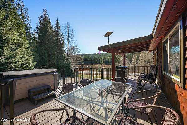 10 private acres near Priest Lake set the stage for this 4 bed, 2 bath home--remodeled in 2018 with vaulted ceilings, clean finishes, and a propane fireplace anchoring the main living space. Main-level primary suite offers easy, single-level living. The kitchen flows into a flexible bonus room--well suited for formal dining, a dedicated office, or additional living space. Upstairs features brand new LVP flooring with new carpet in both bedrooms--durable, clean, and move-in ready. Outdoor living is dialed. Blackstone grill, propane fire pit, and hot tub create a turnkey setup for entertaining or unwinding after long days on the lake or trails. West-facing exposure delivers consistent sunset views across the property. Plenty of usable ground for a future shop, additional outbuildings, or continued privacy. A clean, well-executed property that balances comfort, function, and the Priest Lake lifestyle.
